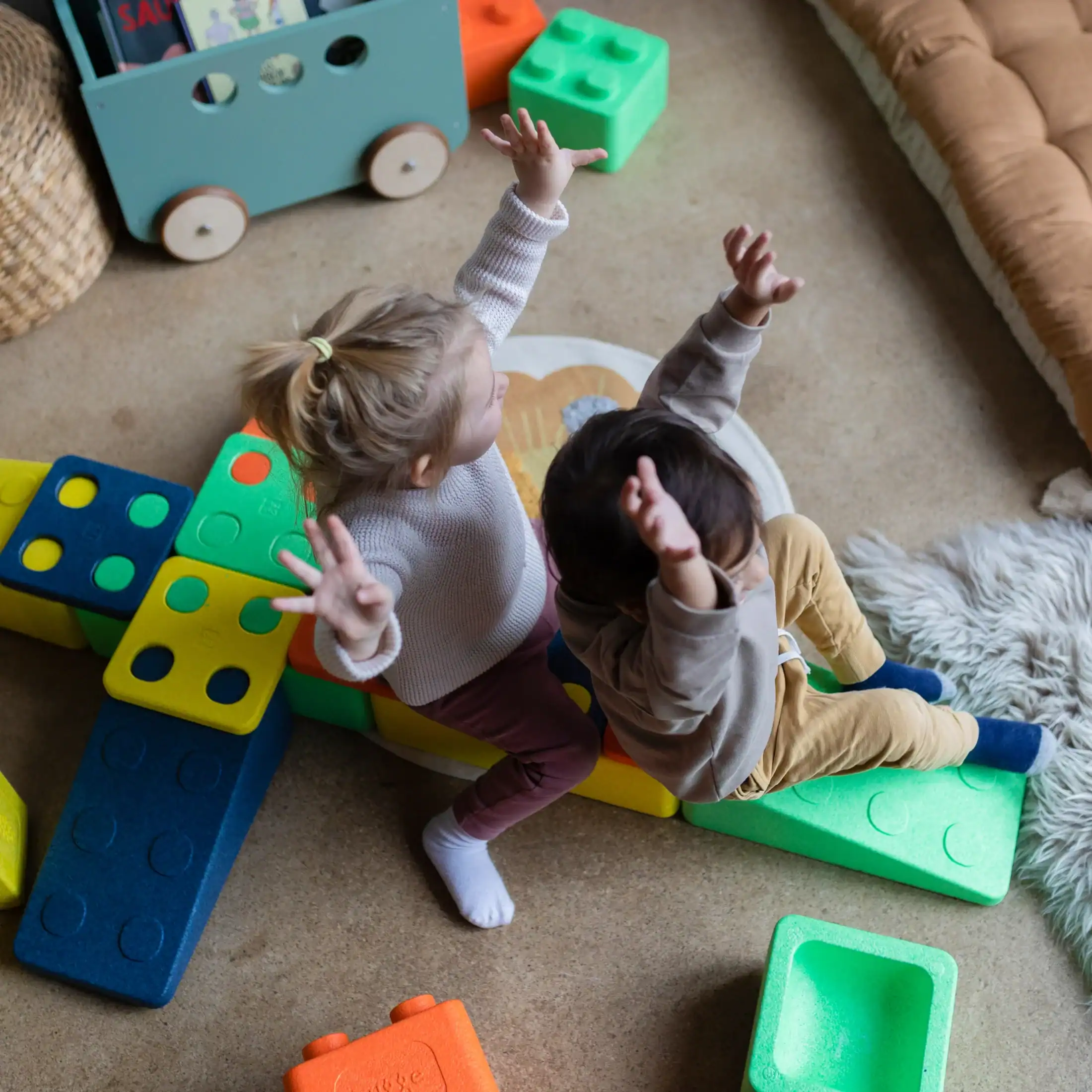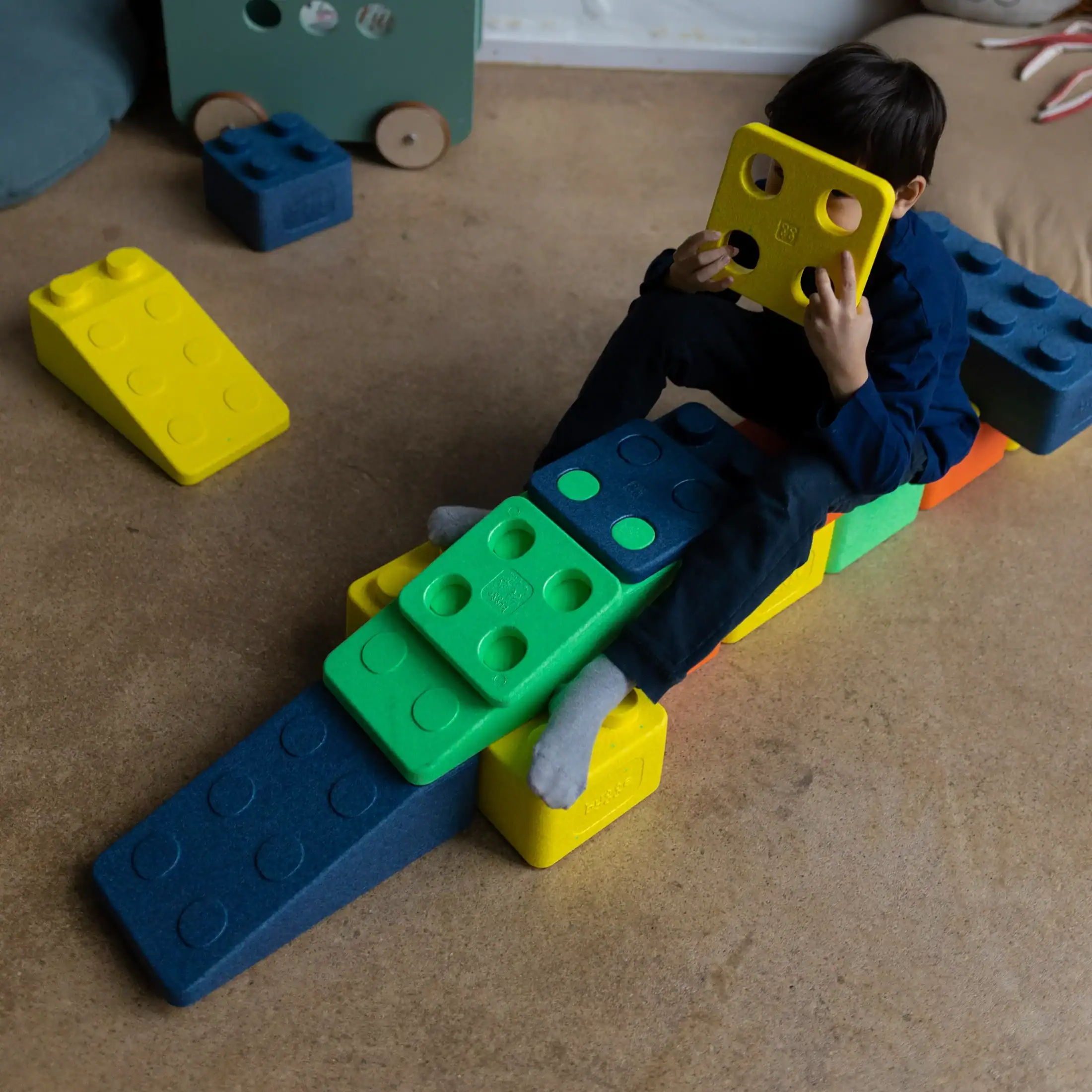 Bij jongere kinderen kan het nog lastig zijn de bouwstenen zelfstandig te stapelen en van elkaar af te halen. Dat maakt de set ook juist interessant voor oudere kinderen. Echte bouwplannen ontstaan vaak bij een hogere leeftijd (4+), maar verschilt uiteraard per kind. Samen bouwen is ook enorm leuk! Zorg er bij het balanceren voor dat het oppervlak vlak antislip is voor optimale stabiliteit. Om voldoende stabiliteit te garanderen tijdens een parcours adviseren wij niet hoger dan 2 stenen te bouwen.
