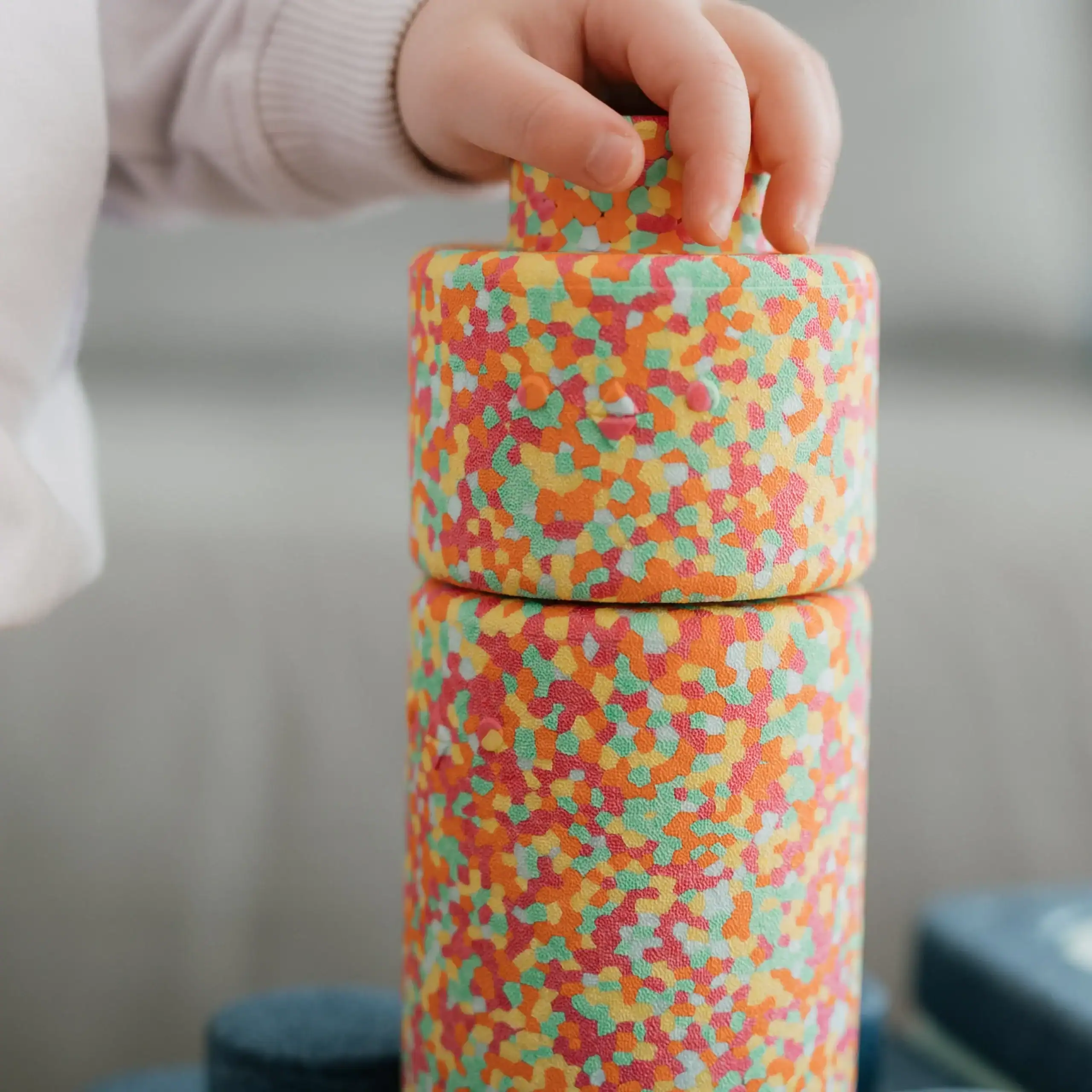 Actief spelen: Gooien, rollen, stapelen – ideaal om de grove motoriek te stimuleren.