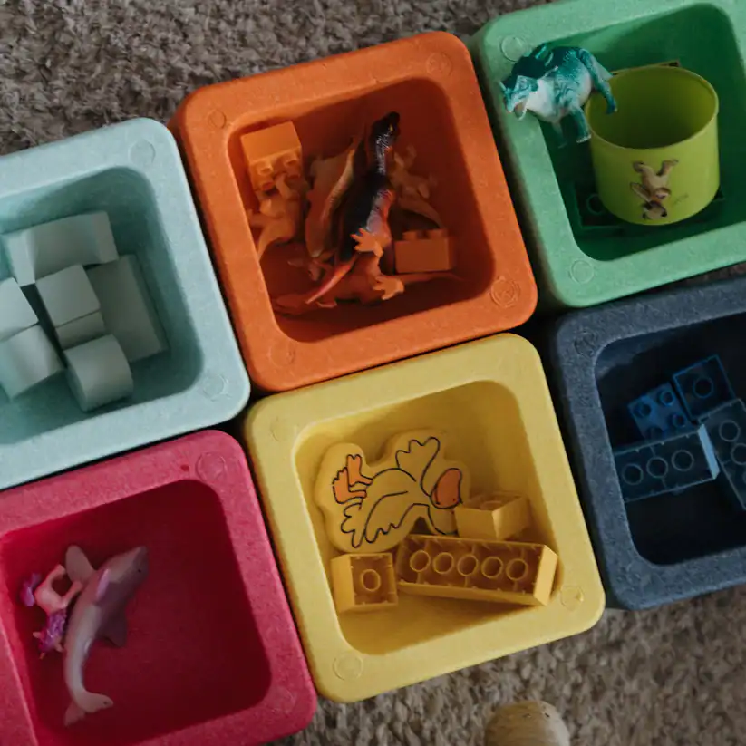 Het kan voorkomen dat een bouwsteen een stipje van een andere kleur bevat. Dit maakt elke steen uniek! Ook is het volkomen normaal dat de ene steen soepeler op een andere steen past dan de ander. Dit verschilt per steen, per volgorde van stapelen. Passen doen ze altijd.
