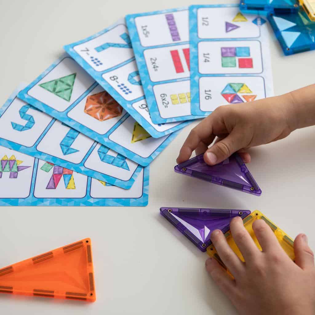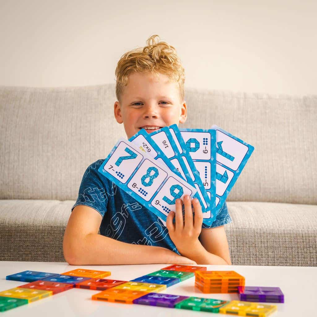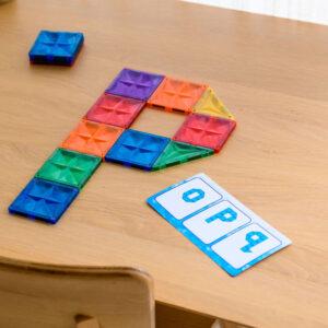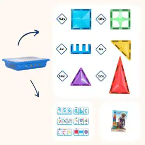 Daarnaast bevat de box 100 magnetische tegels in verschillende vormen en kleuren. De tegels klikken eenvoudig aan elkaar, waardoor kinderen zonder hulp kunnen bouwen. Dit vergroot het zelfvertrouwen en stimuleert zelfstandig werken.