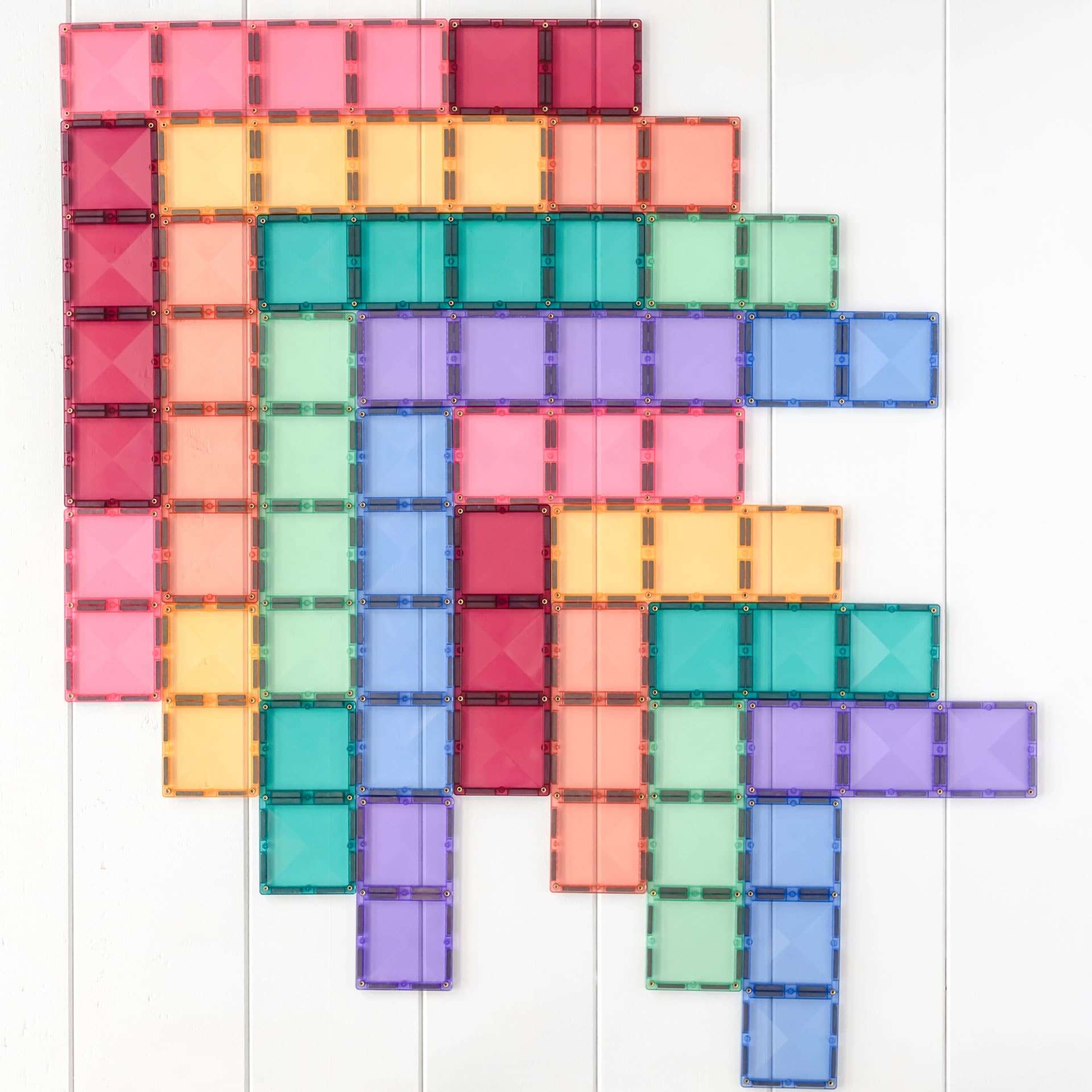 Exclusief ontworpen om dezelfde lengte te hebben als twee, drie of vier standaard Connetix-vierkanten die met elkaar zijn verbonden, dit pakket geeft je bouwwerken de extra stabiliteit en structuur die je nodig hebt om grotere, complexere ontwerpen te maken.