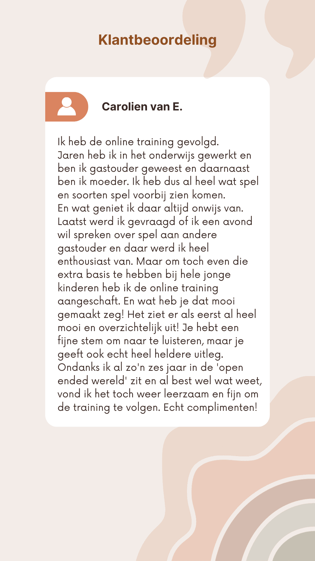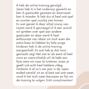 Je hoeft geen pedagogische achtergrond te hebben. Alles wordt helder en praktisch uitgelegd.