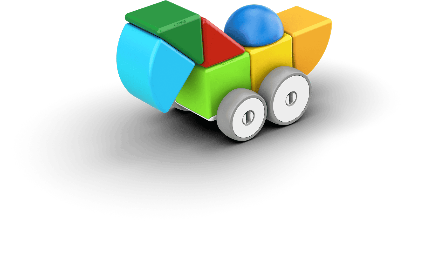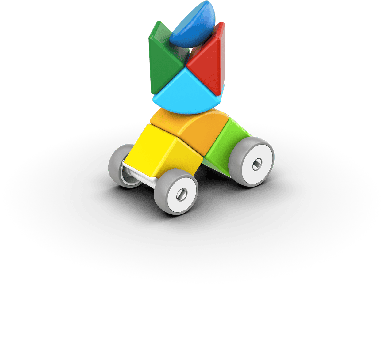Deze set bevat 13 magnetische onderdelen, waaronder kleurrijke bouwblokken én echte wielen. Dankzij het unieke magnetisch systeem klikken de blokken en onderdelen makkelijk aan elkaar – van alle kanten. Je kind bouwt zijn eigen voertuigen, breekt ze weer af en verzint telkens iets nieuws.