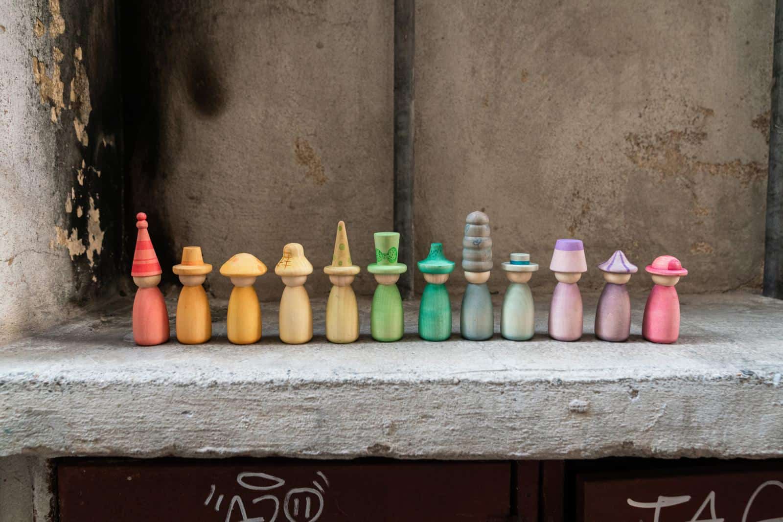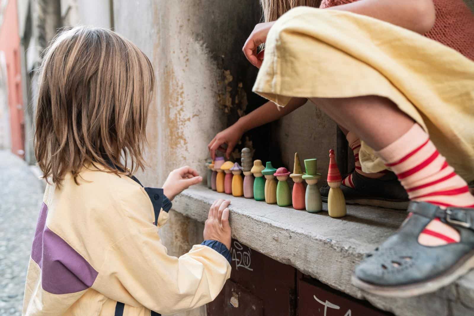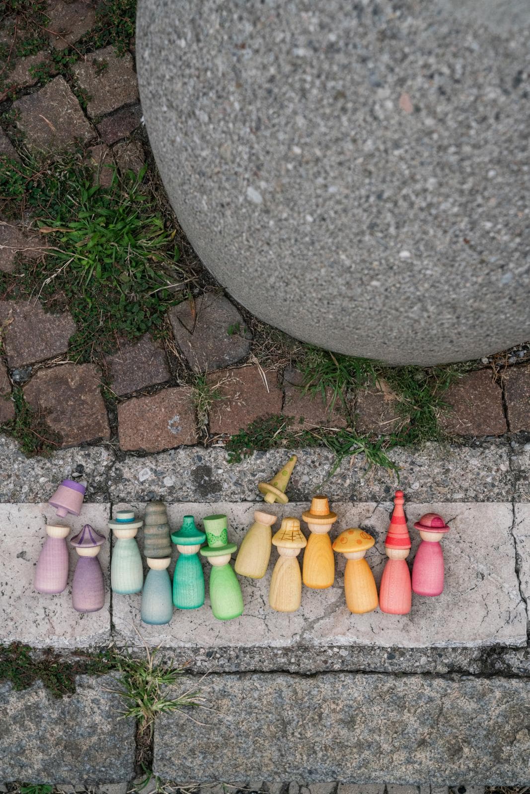 De set bevat 12 Nins met de hand gekleurd in onze 12 kenmerkende kleuren van de regenboog met verwisselbare hoedjes en lichamen om nog meer kleurrijke combinaties te maken!
