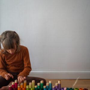 Een van de twee zusjes van onze befaamde Lola set, met 36 stuks in onze 6 niet-basiskleuren. Veelzijdig en vindingrijk, La is altijd in voor elk spel dat een kind op dat moment wil ontdekken. Ook leent zich uitstekend voor activiteiten die divergent denken, oog-handmatige en logisch-wiskundige ontwikkeling stimuleren.