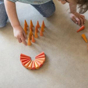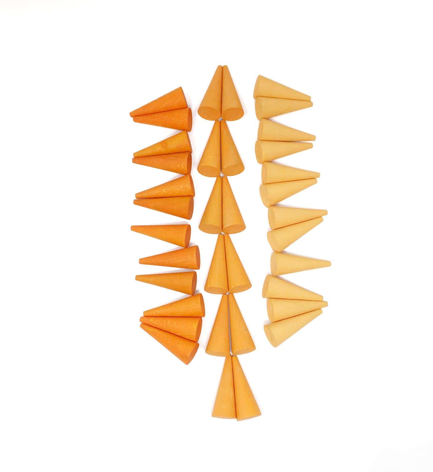 36 Kegels in 3 verschillende tinten oranje. Gebruik ze in combinatie met andere mandala items om de mooiste creaties te maken.