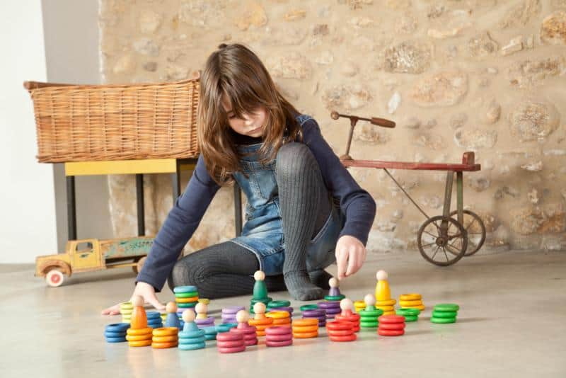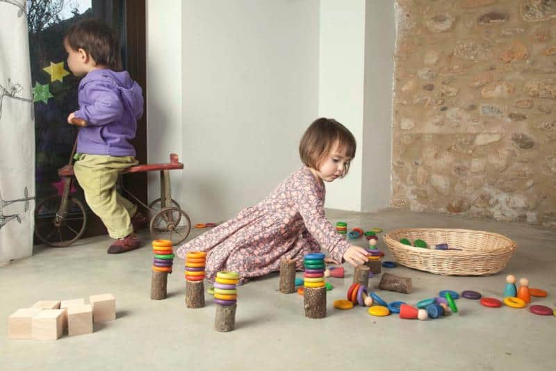 Dit spel maakt de ontwikkeling van logisch-wiskundig denken mogelijk door elementen te classificeren, groeperen en matchen door middel van kleuren en/of vormen. Deze acties verbeteren de hand-oogcoördinatie en motorische vaardigheden. De ringen worden een materiaal dat kan worden gebruikt om draad in te rijgen, op te stapelen en verschillende spellen te creëren. De Nins kunnen worden gebruikt als symbolisch spel om verhalen en kleine werelden te creëren. Naast het eerste pedagogische voorstel kan dit materiaal vanuit een veelzijdig perspectief worden bekeken, waardoor het op een groot aantal manieren kan worden gebruikt. Het aanpassingsvermogen van deze materialen draagt bij aan creatieve en uiteenlopende manieren van denken.