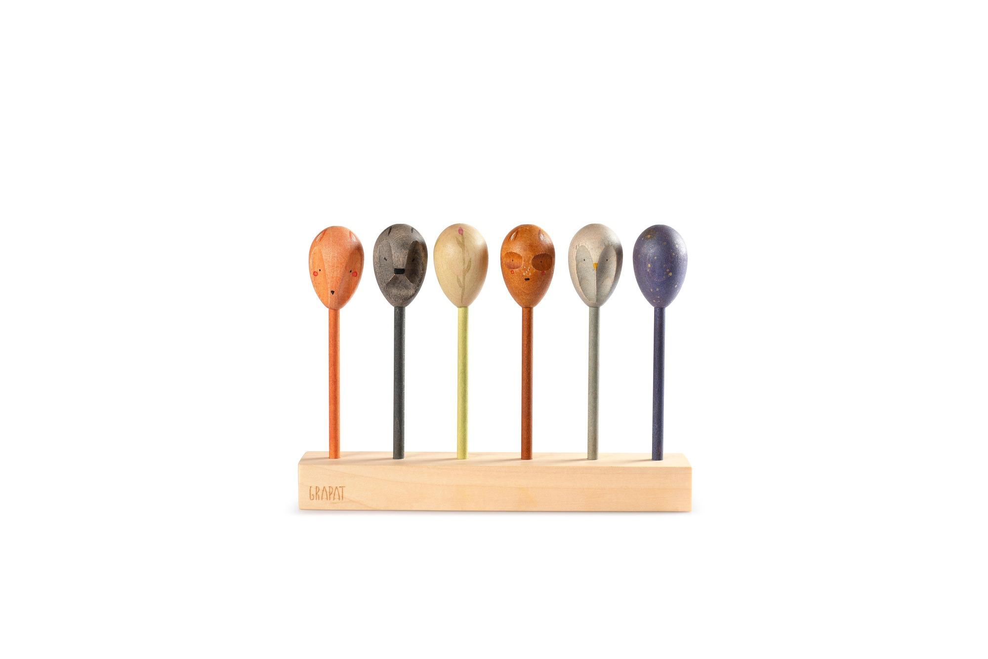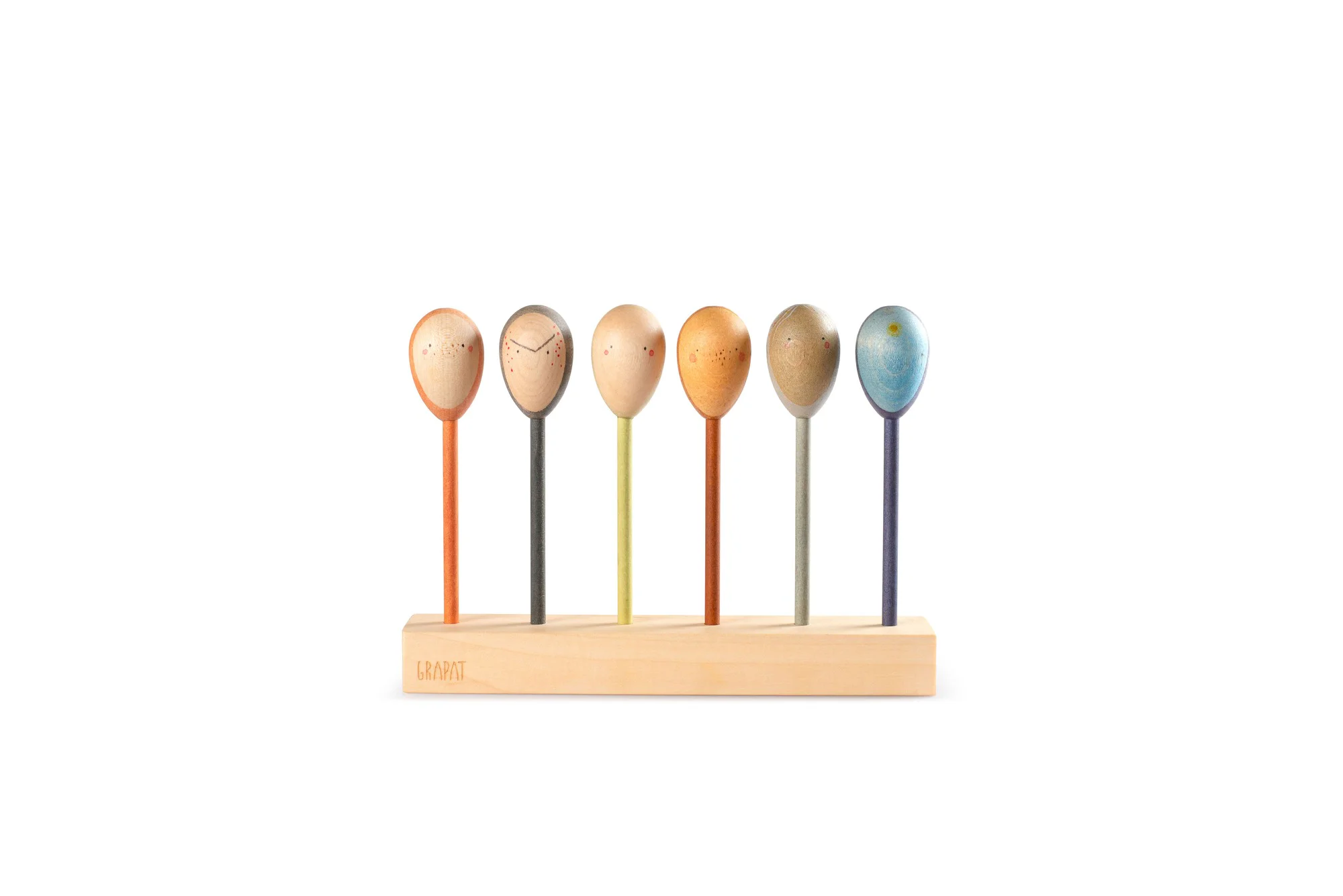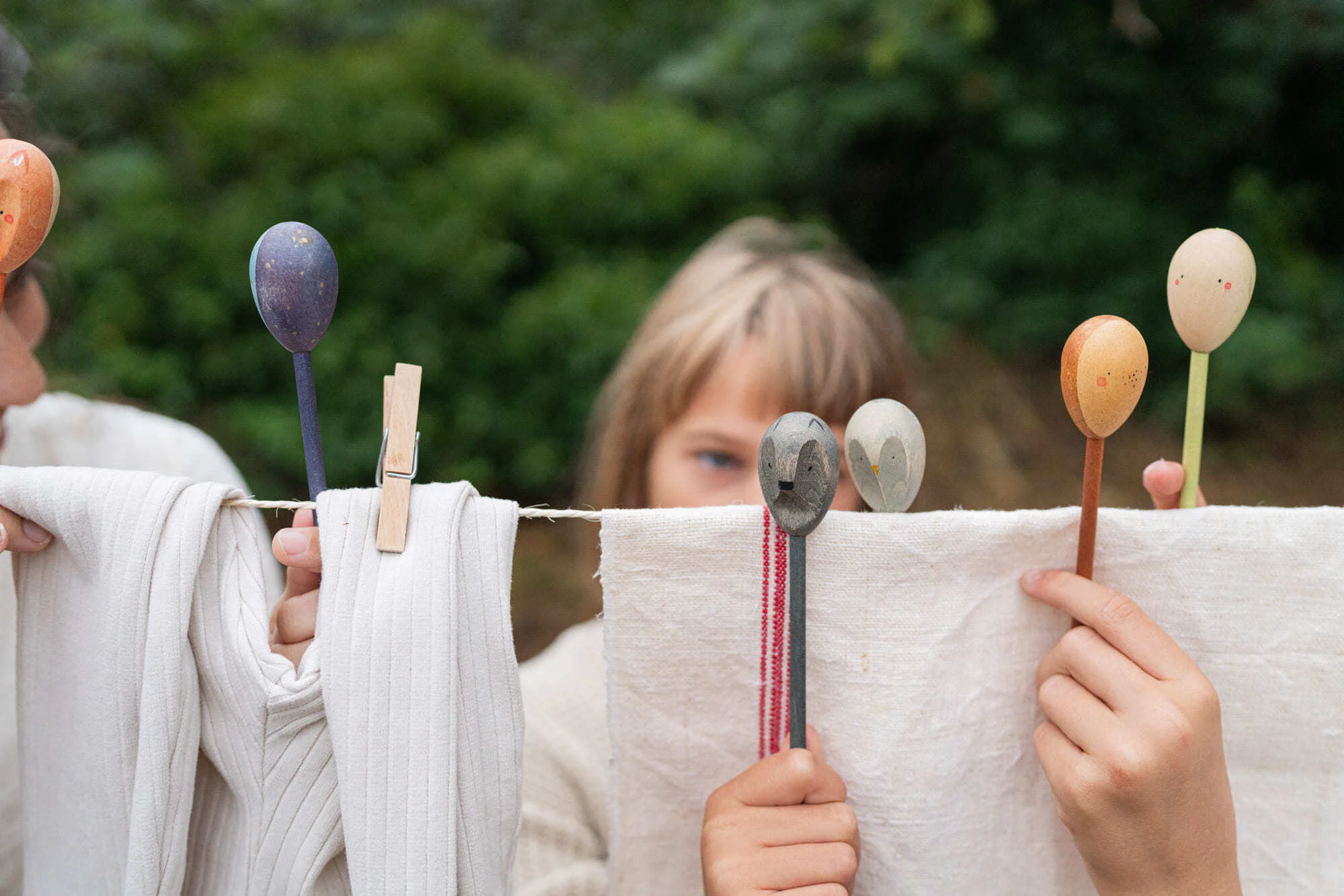 Zes poppetjes met dubbele gezichten voor urenlang speelplezier! We zien een kleine vos, een wijze uil, de maan, een mooie bloem, de boze wolf en een lieve beer. Als je de poppetjes omdraait veranderen ze naar een kleine jongen, een wijze vrouw, de zon, een fee, een ondeugend meisje met sproetjes en meer.