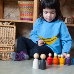 Door de dimensie van deze figuren kunnen we rekening houden met de verschillende generaties mensen die aanwezig zijn in het leven van het kind. Het kan worden gecombineerd met de klassieke Nins en baby Nins om vorm te geven aan talloze gezinsstructuren.