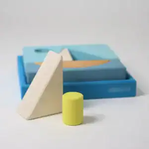 Laat kinderen meevoeren op een zee van verbeelding met de GRIMM’s Bouwset Blauw – een tijdloos houten bouwspel vol rust en creativiteit.