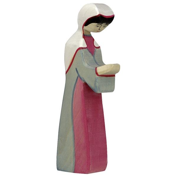 Houten, handgemaakte Maria van Holztiger. Holztiger figuren staan al jaren voor speelplezier en de hoogste kwaliteit. Ze zijn individueel handgemaakt in Europa van massief esdoorn- en beukenhout, zacht afgerond en geverfd met verf op waterbasis.