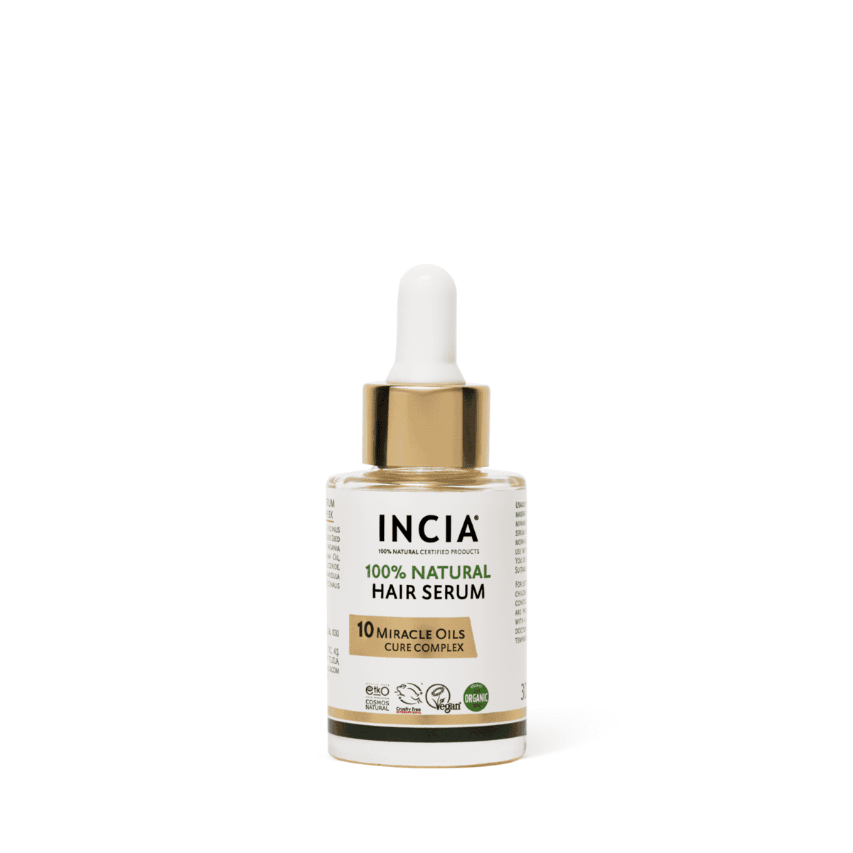 Versterk je haar op natuurlijke wijze vanaf de wortels Ons INCIA 100% Natuurlijke Haarserum is verrijkt met de kracht van 10 natuurlijke oliën die diep inwerken op de haarwortels en zorgen voor een gezonde en glanzende haargroei. Dit unieke serum voedt en hydrateert zowel de hoofdhuid als het haar, waardoor het haar er voller, sterker en levendiger uitziet. Dermatologisch getest: Veilig voor dagelijks gebruik, ook voor de gevoelige huid.