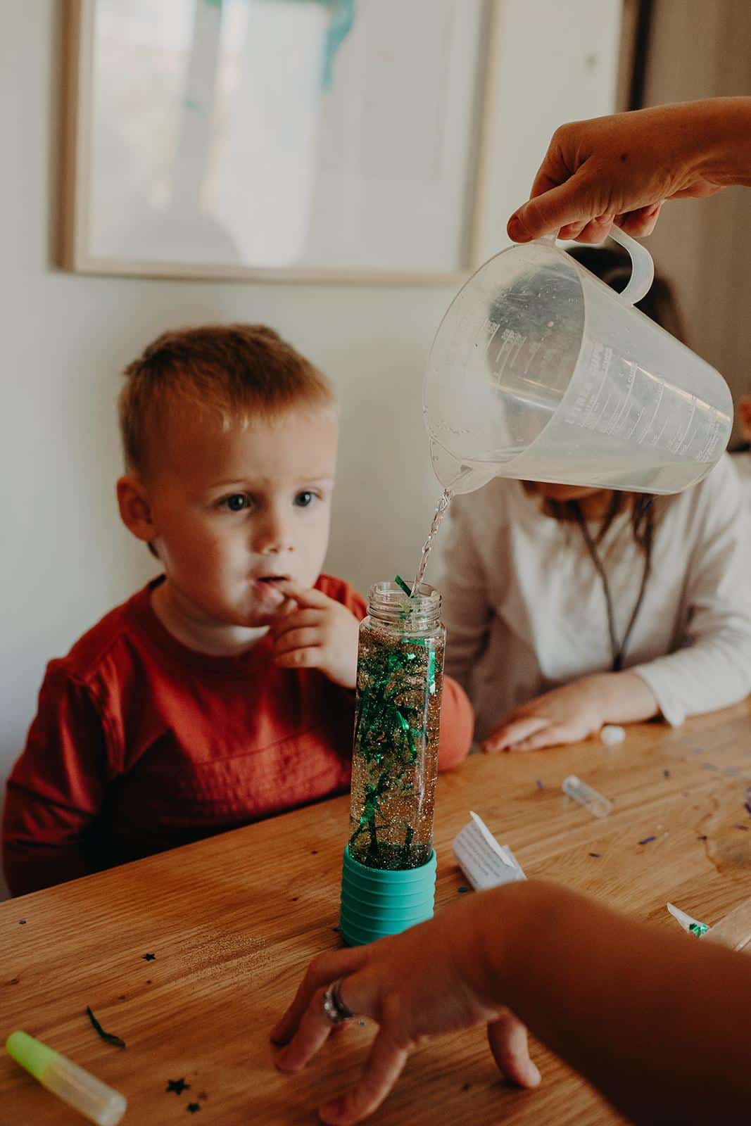 Wat deze fles extra bijzonder maakt, is dat je hem steeds opnieuw kunt vullen en gebruiken. Zo blijft het een bron van verwondering, rust en creativiteit, keer op keer. Ouders, leerkrachten en therapeuten gebruiken de DIY Sensorische Fles als hulpmiddel om kinderen te helpen tot rust te komen, hun ademhaling te reguleren en hun aandacht te herpakken.