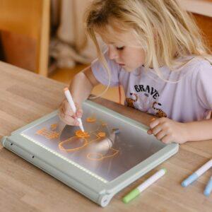 Voorzijde: lichttablet waarmee kinderen tekeningen en letters kunnen overtrekken.