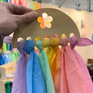 Dankzij de zeven openingen kunnen kinderen hun favoriete doeken eenvoudig ophangen, er doorheen trekken of gebruiken tijdens open einde spel.