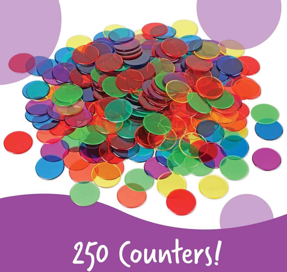 Geef wiskunde en spel kleur met de Learning Resources Transparante Fiches! Deze set van 250 kleurrijke, doorschijnende fiches is onmisbaar in het onderwijs en een waardevolle aanvulling voor speelhoeken en thuis.