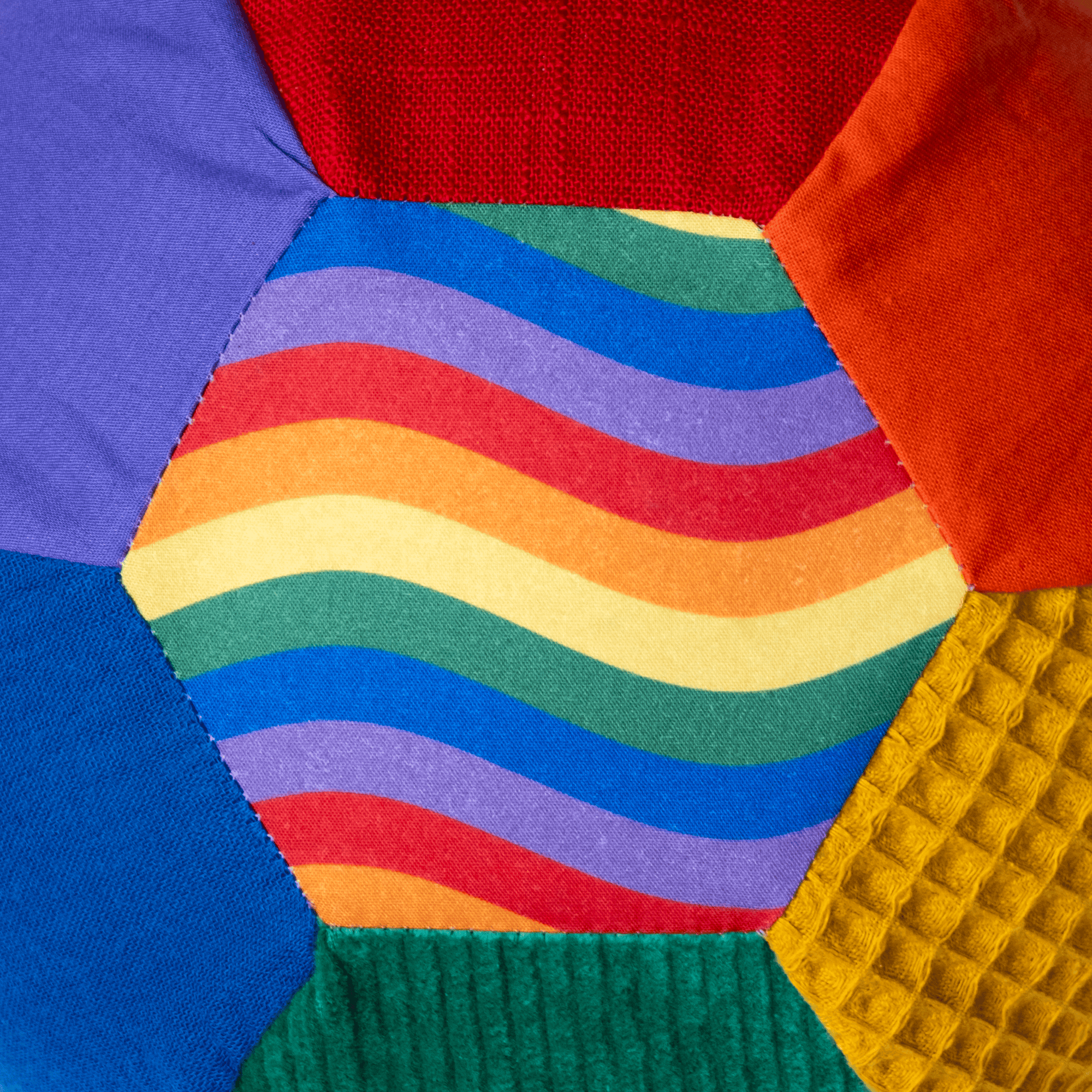 Deze handgemaakte ballonbal bestaat uit zeven verschillende stoffen, variërend van glad linnen tot zachte rib. De regenboogkleuren sluiten perfect aan bij de pastel pittenzakjes van Little Botanic Label, wat deze bal niet alleen leerzaam, maar ook esthetisch aantrekkelijk maakt.
