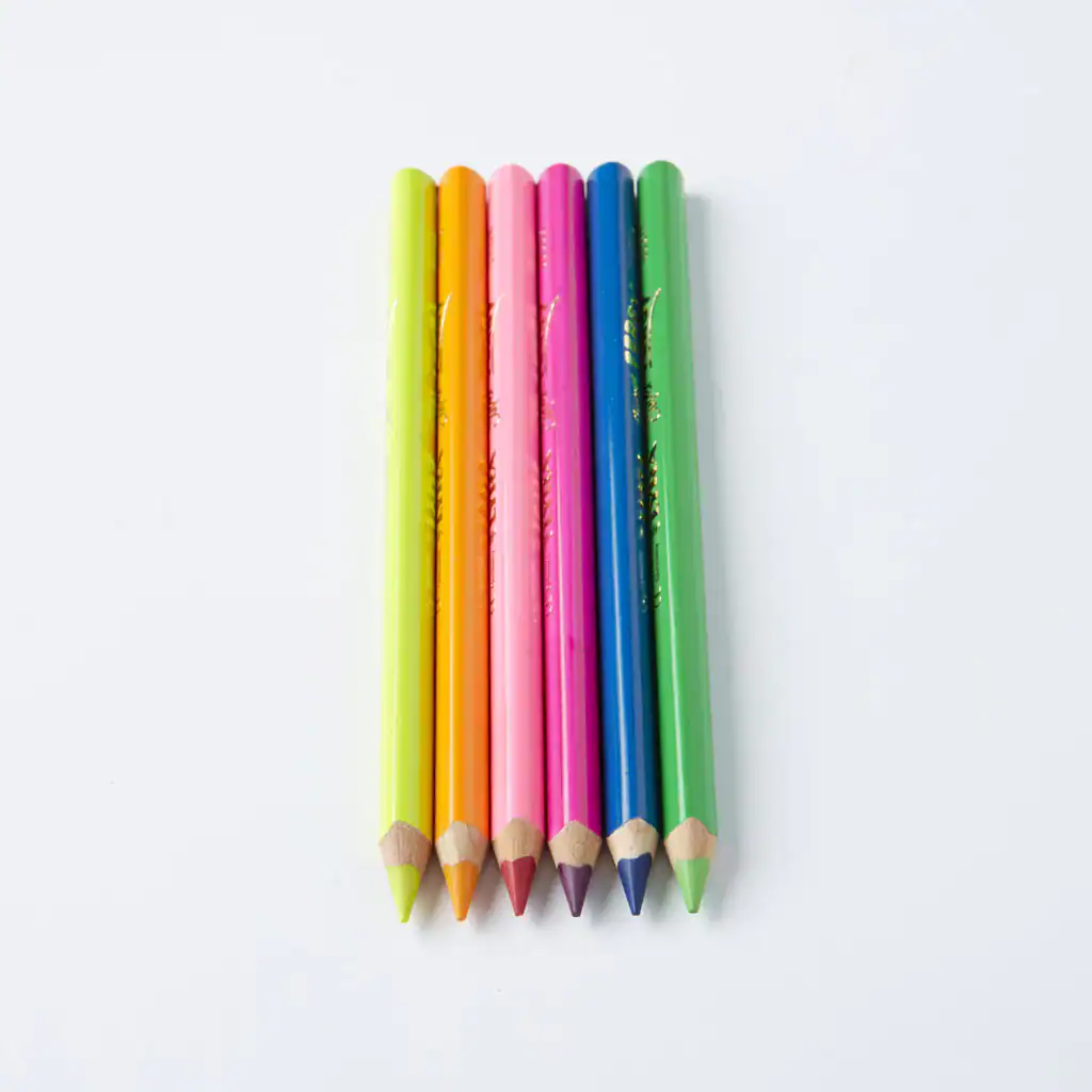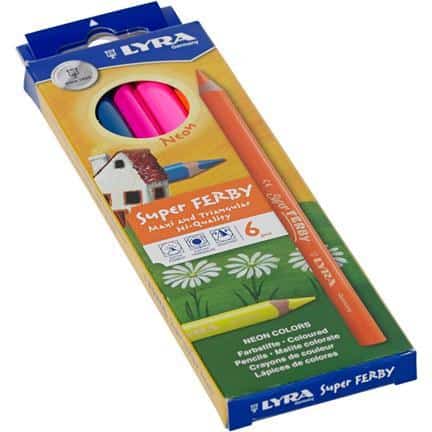 Dikke potloden met een driehoekige vorm die de pengreep bevordert, wat erg prettig is bij kinderen die nog moeite hebben om een potlood op de juiste manier vast te houden. Het potlooduiteinde is gesloten, de stift is met 6,25 mm superdik, breekvast en heeft een sterk kleurpigment.