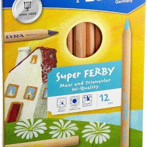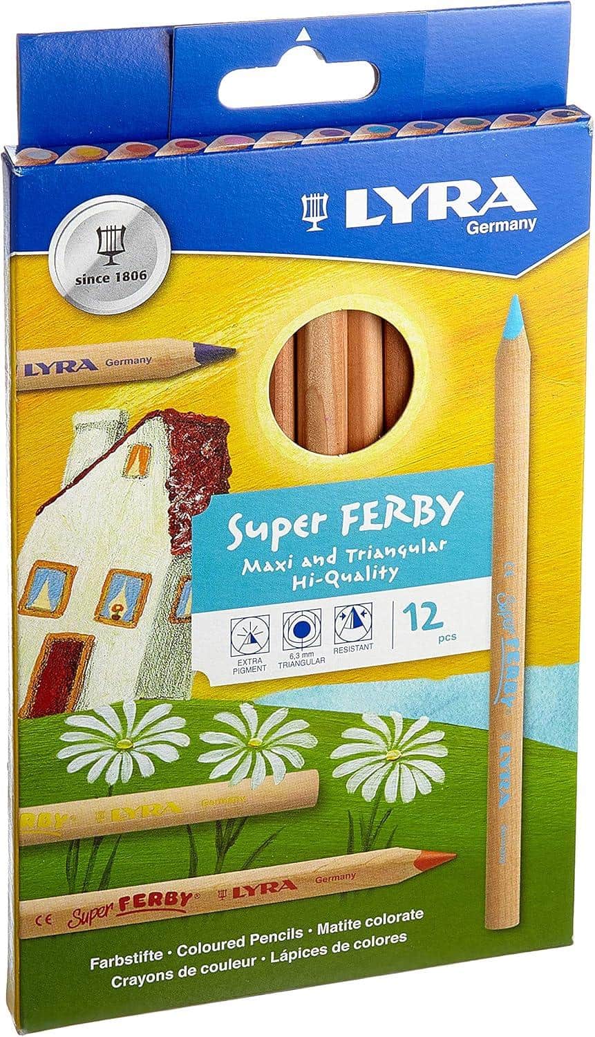 Ontdek de Lyra Super Ferby kleurpotloden: extra dikke kleurpotloden van 17,5 cm lang, ontworpen voor een ergonomische grip en een soepele tekenervaring. Dankzij de driehoekige vorm stimuleren ze de juiste pengreep, wat ze ideaal maakt voor kinderen die nog leren hoe ze een potlood moeten vasthouden.