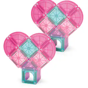 Met de MAGNA TILES travelset Heart to Heart vieren kinderen creativiteit, kleur en liefde in een compacte magnetische bouwset. Deze 26-delige microMAGS® reisset zit boordevol sprankelende roze, teal en paarse tegels, aangevuld met decoratieve boogvensters en dynamische kwartcirkels. Daardoor voegen kinderen moeiteloos rondingen, beweging en speelse accenten toe aan elke creatie.
