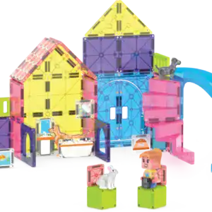 De MAGNA-TILES Pet Playhouse 50-delige set zit boordevol speelse elementen zoals een Glijbaan, Dubbele Deuren en vier schattige huisdieren, waarmee kinderen hun eigen droomwereld voor dieren kunnen bouwen en eindeloos kunnen spelen.