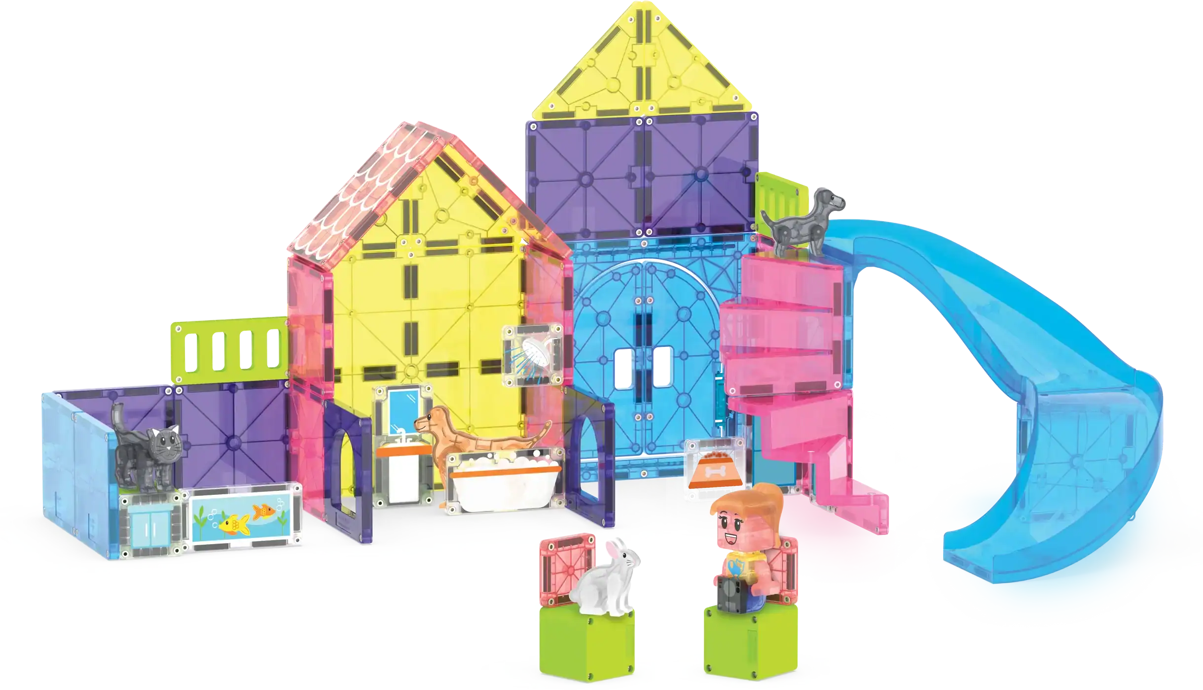 Combineer met de MAGNA-TILES Dog House, Cat Tree en Hamster Ball sets voor een wereld vol huisdieravonturen!