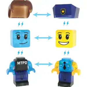 De set bevat twee Mix & Match politiefiguren en verwisselbare voertuigonderdelen. Zo kunnen kinderen hun politievoertuigen en personages telkens opnieuw aanpassen. De handige MicroMAGS Cubes maken het bouwen en stapelen eenvoudig, ook voor jongere kinderen.