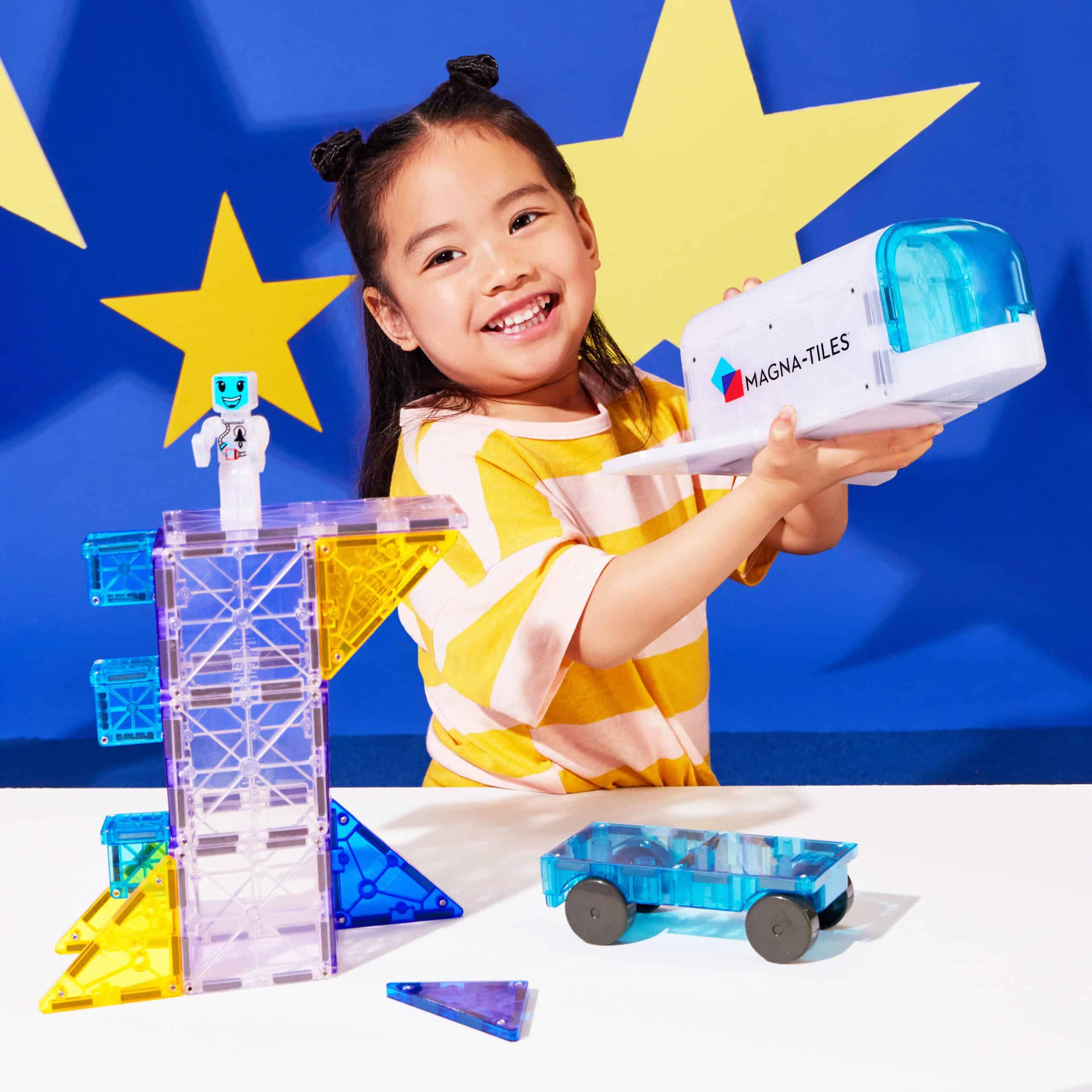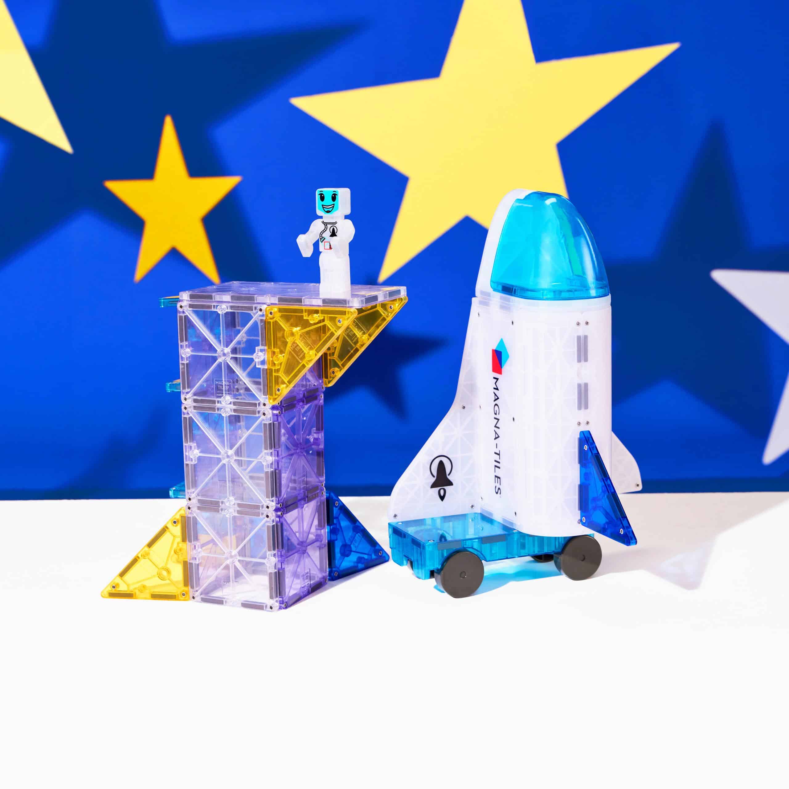 Ga op een kosmisch avontuur en ontdek nieuwe speelmethoden met het unieke Space Shuttle-voertuig dat na het spelen alle onderdelen handig opbergt. Beleef het plezier van leren door te spelen met deze STEAM-geïnspireerde ruimte-ervaring. Toekomstige astronauten zijn het erover eens: MAGNA-TILES® Space biedt een ongeëvenaarde bouwbelevenis! De set bevat een innovatieve Shuttle met voldoende opbergruimte voor alle stukken.