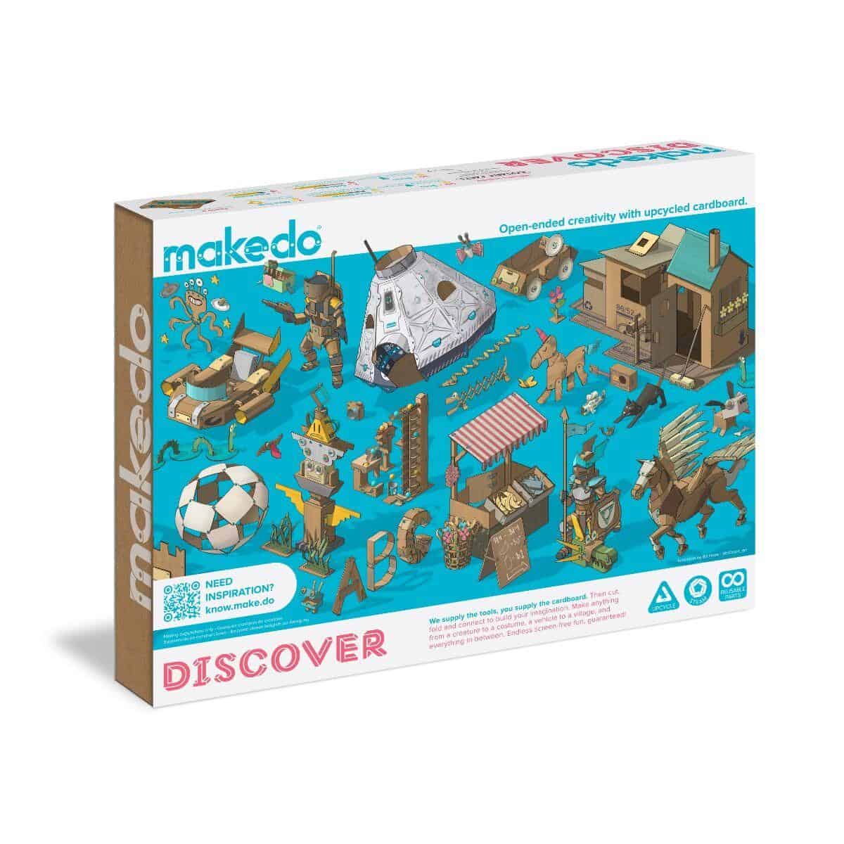 Met de Discover Kit ontdek je hoe leuk en duurzaam bouwen met karton kan zijn. Het systeem moedigt kinderen en volwassenen aan om afvalmateriaal een tweede leven te geven en hun technische en creatieve vaardigheden verder te ontwikkelen. Of je nu thuis een middag creatief wilt bouwen, of in de klas een educatief project start – de Makedo Discover Kit biedt eindeloze mogelijkheden.