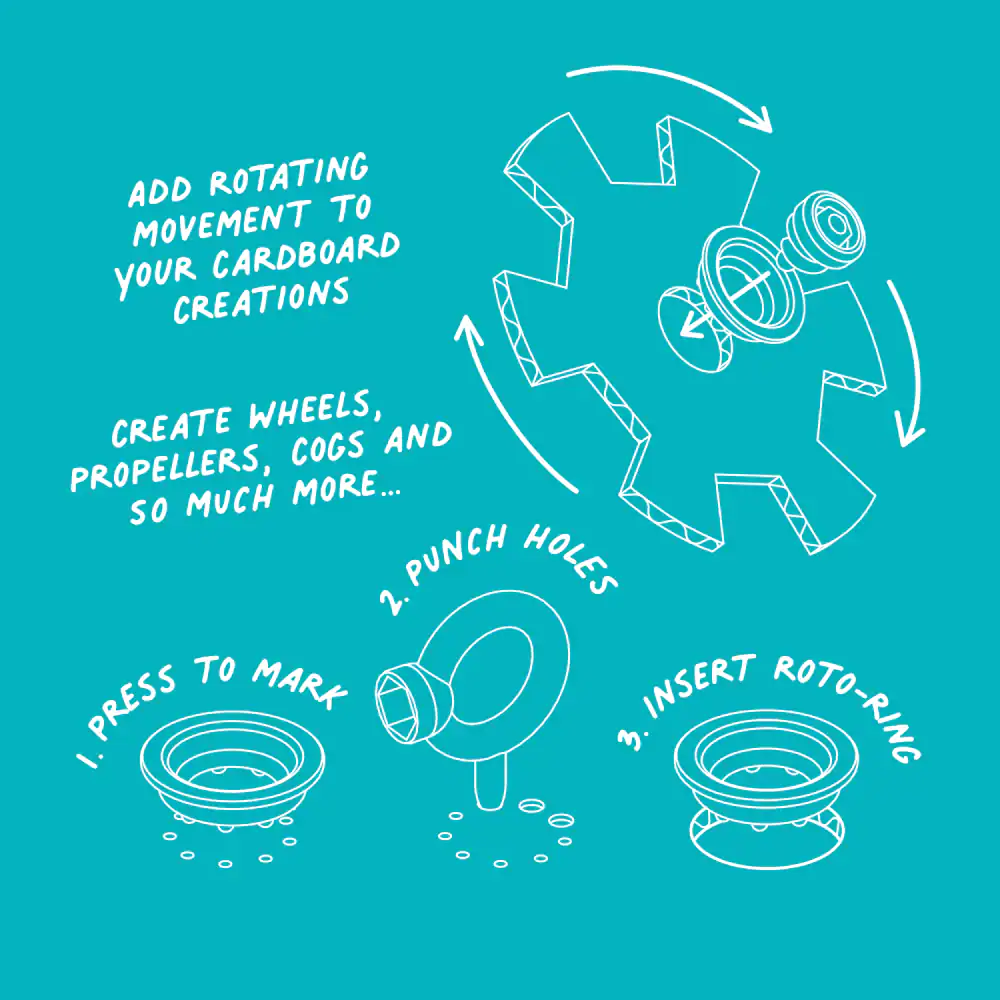 De Roto-Ring is volledig compatibel met alle andere Makedo-sets, zodat je jouw kartonprojecten eindeloos kunt uitbreiden.