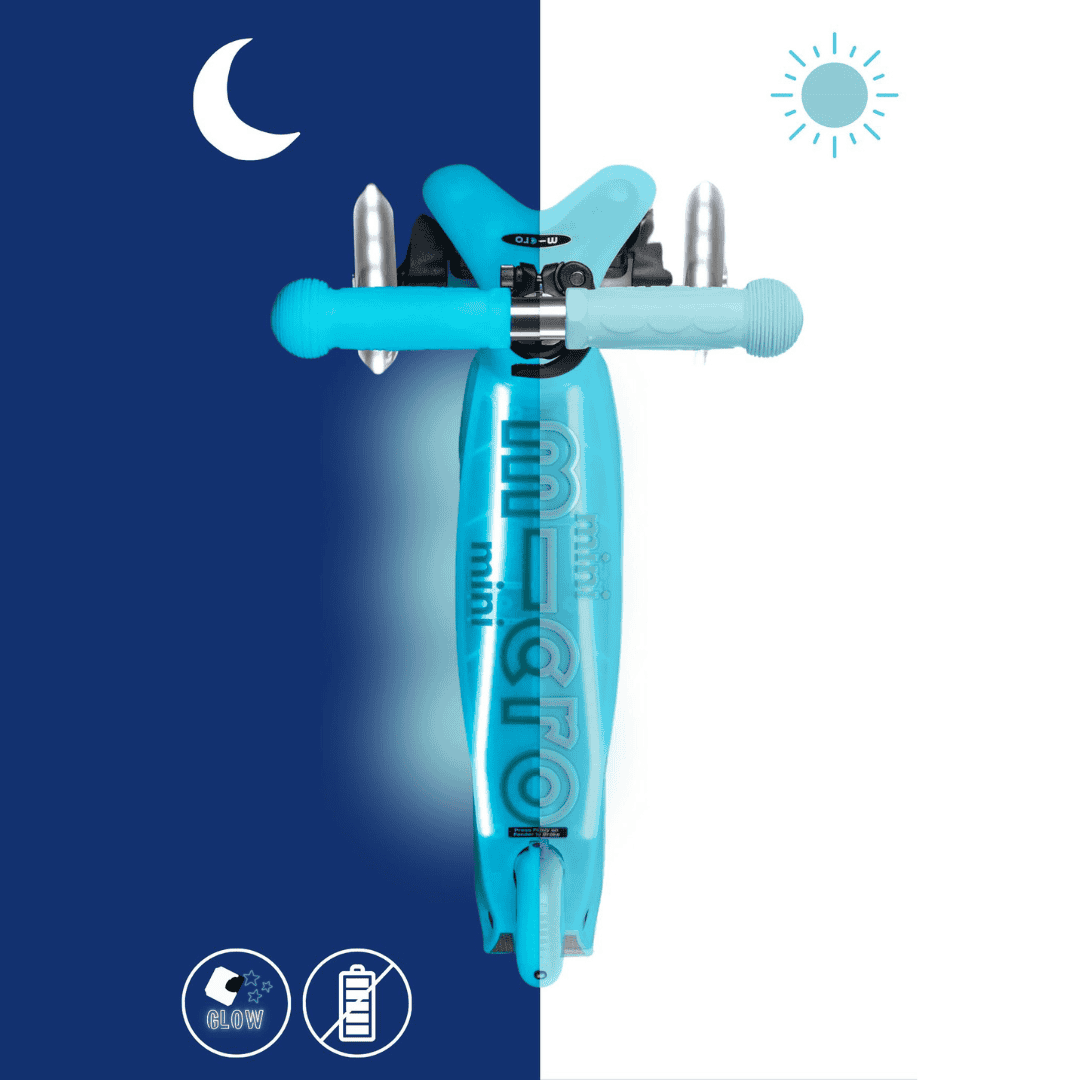 - Gemak & plezier: Het met 1 klik uitneembare stuur en het lichtgewicht frame maken het gemakkelijk om de step te dragen of compact op te bergen. De wielen van de Mini Deluxe Glow Plus zijn gegoten in hoogwaardig, helder 120 mm polyurethaan (PU) wat zorgt voor een supergladde, zachte Micro step-rit. Dankzij deze streeploze wielen kan deze 3-wiel step ook op binnenvloeren worden gebruikt.