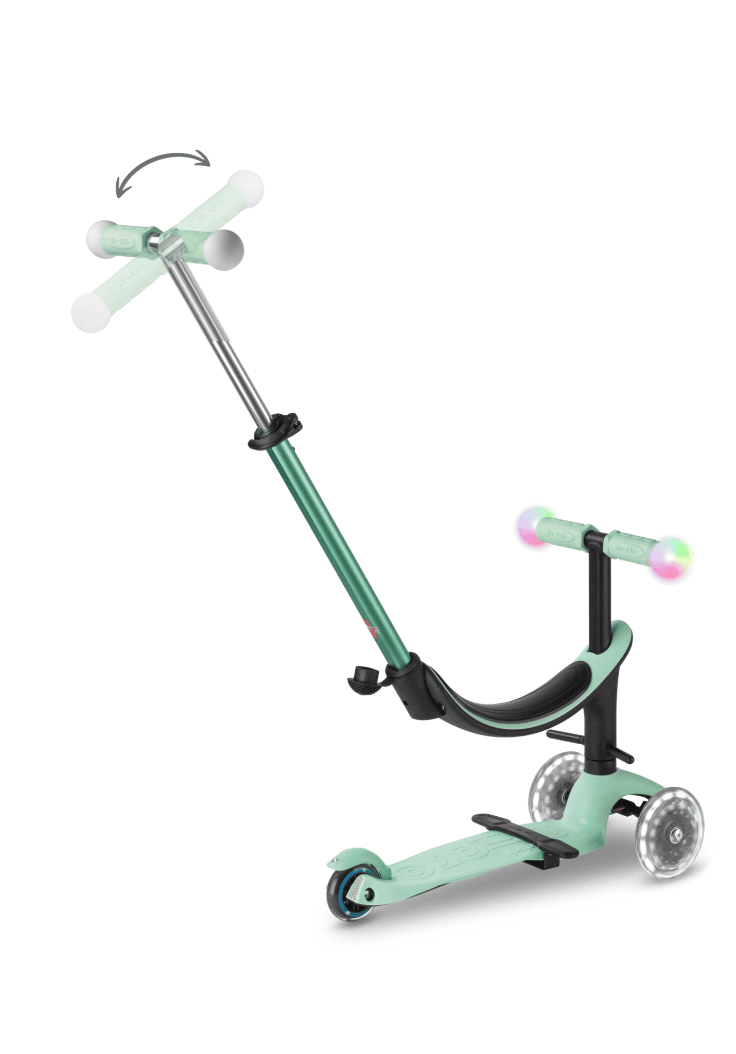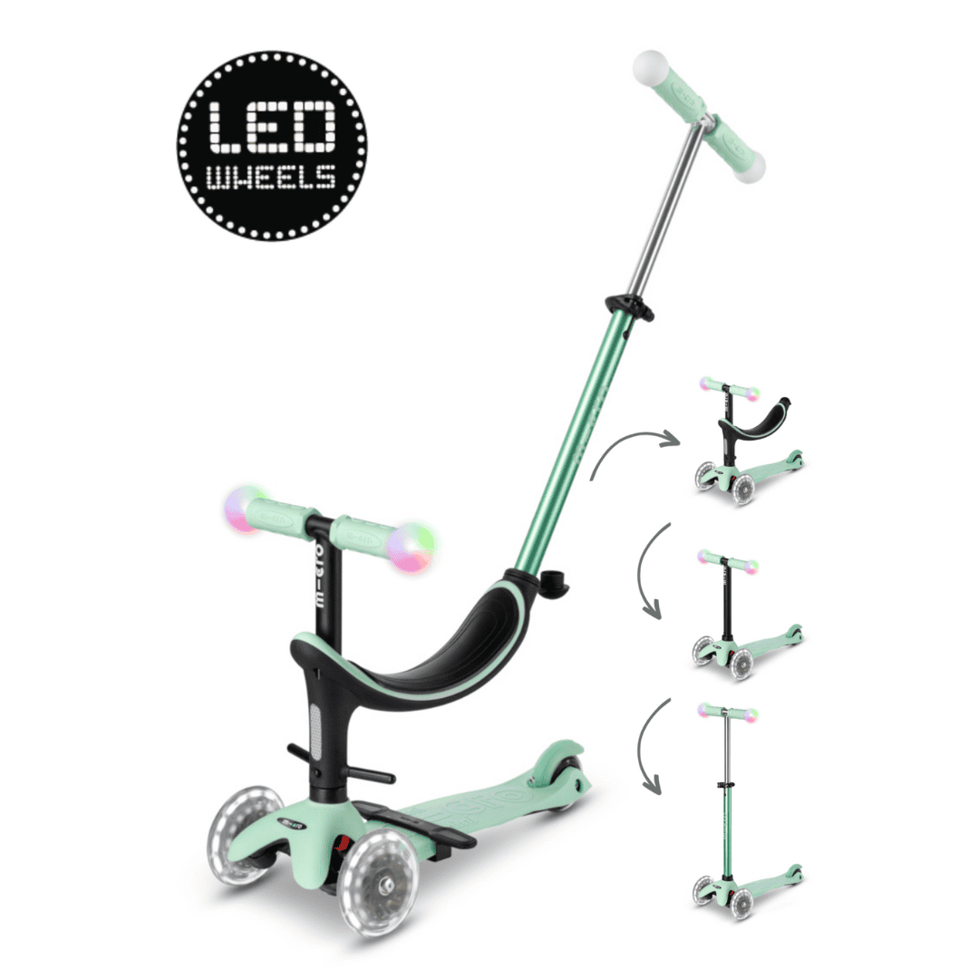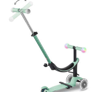 Gemak & plezier: Het stuur van deze kinderstep is eenvoudig te verwijderen, waardoor je de step gemakkelijk kunt dragen of compact op kunt bergen. Op het stuur zitten schokabsorberende kunststof grips met Magic LED-lampen die in 5 kleuren oplichten bij aanraking. De batterijloze LED-moon wielen van de Mini2Grow zijn gemaakt van hoogwaardig polyurethaan (PU). Dankzij deze streeploze wielen kan deze 3-wiel step ook op binnenvloeren worden gebruikt.