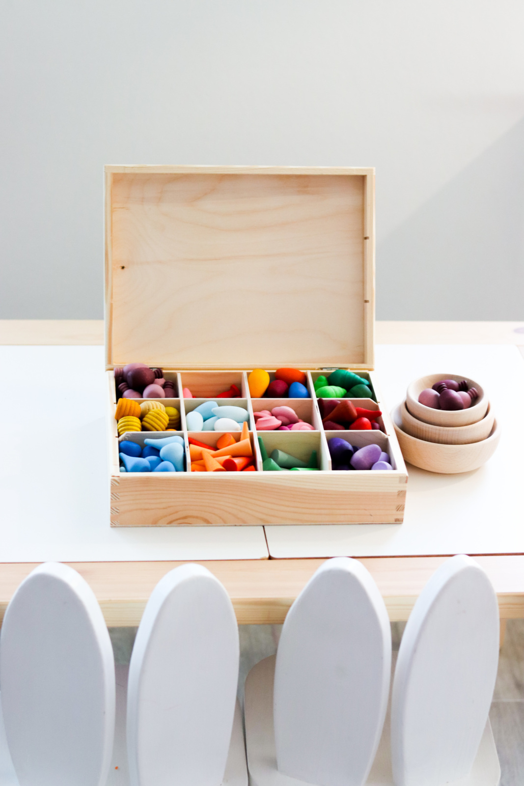 Niets is heerlijker dan je kind zien spelen. Blokjes, puzzels, houten dieren; alles komt tevoorschijn. Resultaat: de hele woonkamer ligt vol speelgoed. Dat is verleden tijd met deze grenen opbergkist! De kist heeft verschillende vakjes, zodat je het speelgoed kunt ordenen. Heb je alles opgeborgen? Dan sluit je deze opbergkist eenvoudig af door de deksel dicht te doen. De opbergkist is naast functioneel ook een lust voor het oog! In één vakje past ongeveer een half Grapat setje.