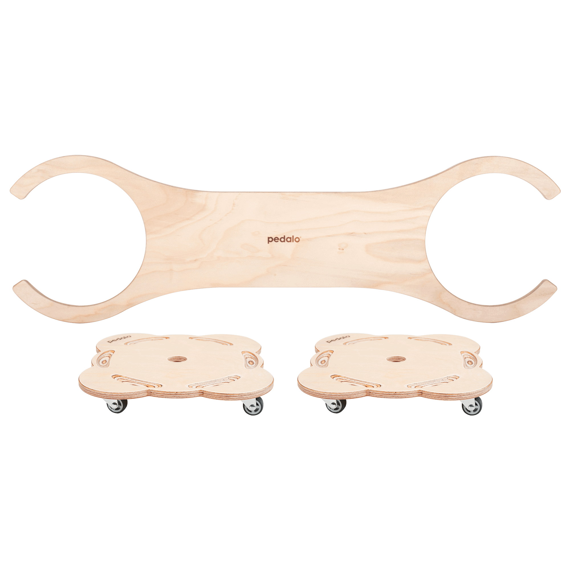 Pedalo produceert sinds 1963 hoogwaardige houten producten in Duitsland, met als kernwaarden: duurzaamheid, veiligheid en reparatiegerichte kwaliteit. De Rollrutscher-onderstellen zijn stevig en veilig vormgegeven, met afgeronde vormen en natuurlijke materialen. De houten balk en de Stapelstein-steen zijn solide en duurzaam – ontworpen om veelvuldig intensief gebruik en beweging mee te maken.