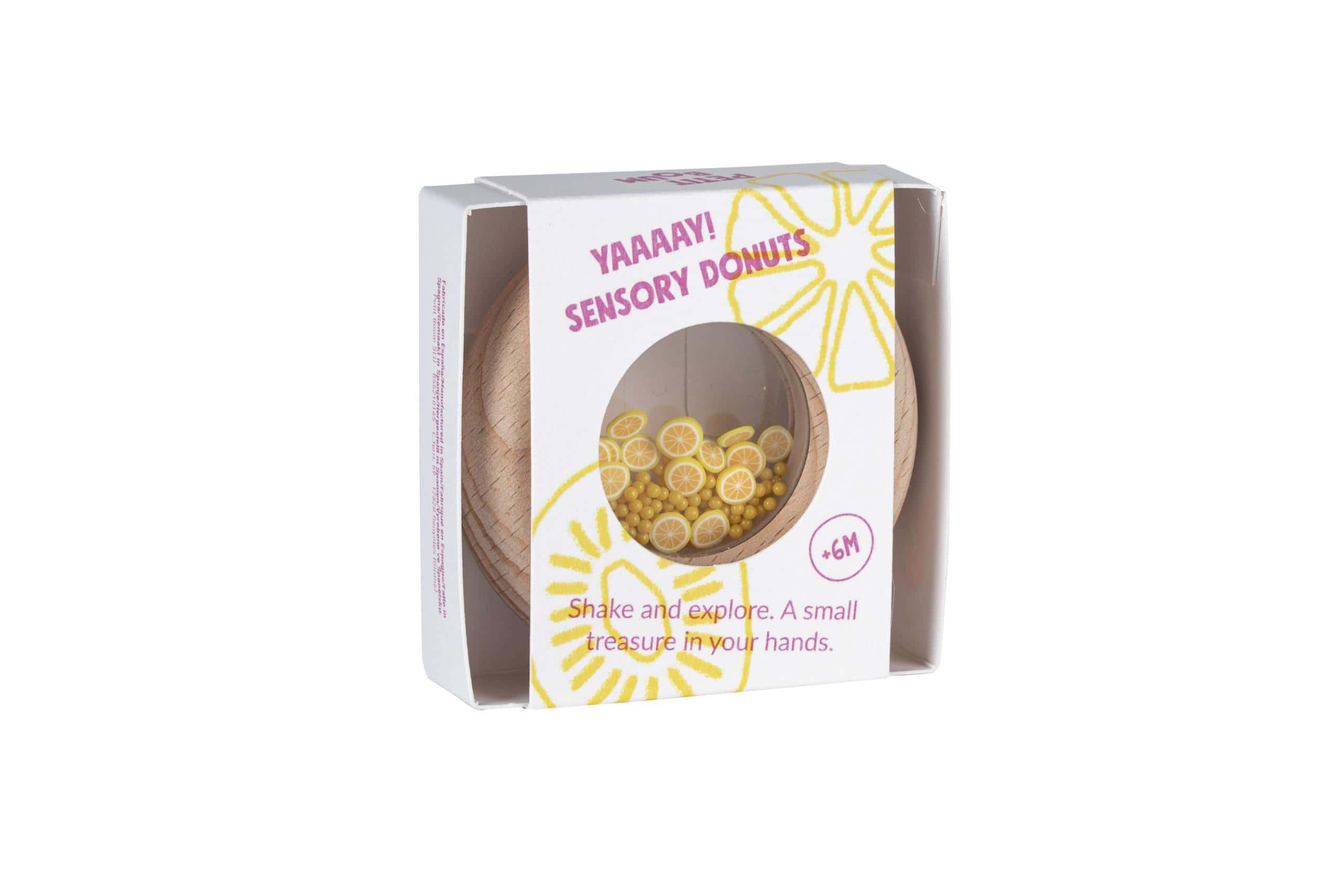 Deze leuke rammelaar in de vorm van een donut is perfect voor kleine handjes! Binnenin zitten kleurrijke figuurtjes van fruit en groenten die, zodra je kindje de donut schudt, een vrolijk geluid maken. Het ontwerp is speciaal gemaakt om makkelijk vast te houden en biedt uren speelplezier. Hoewel hij eruitziet om op te eten, is de donut gemaakt van natuurlijk, veilig beukenhout en bestand tegen bijten – ideaal voor nieuwsgierige baby’s.