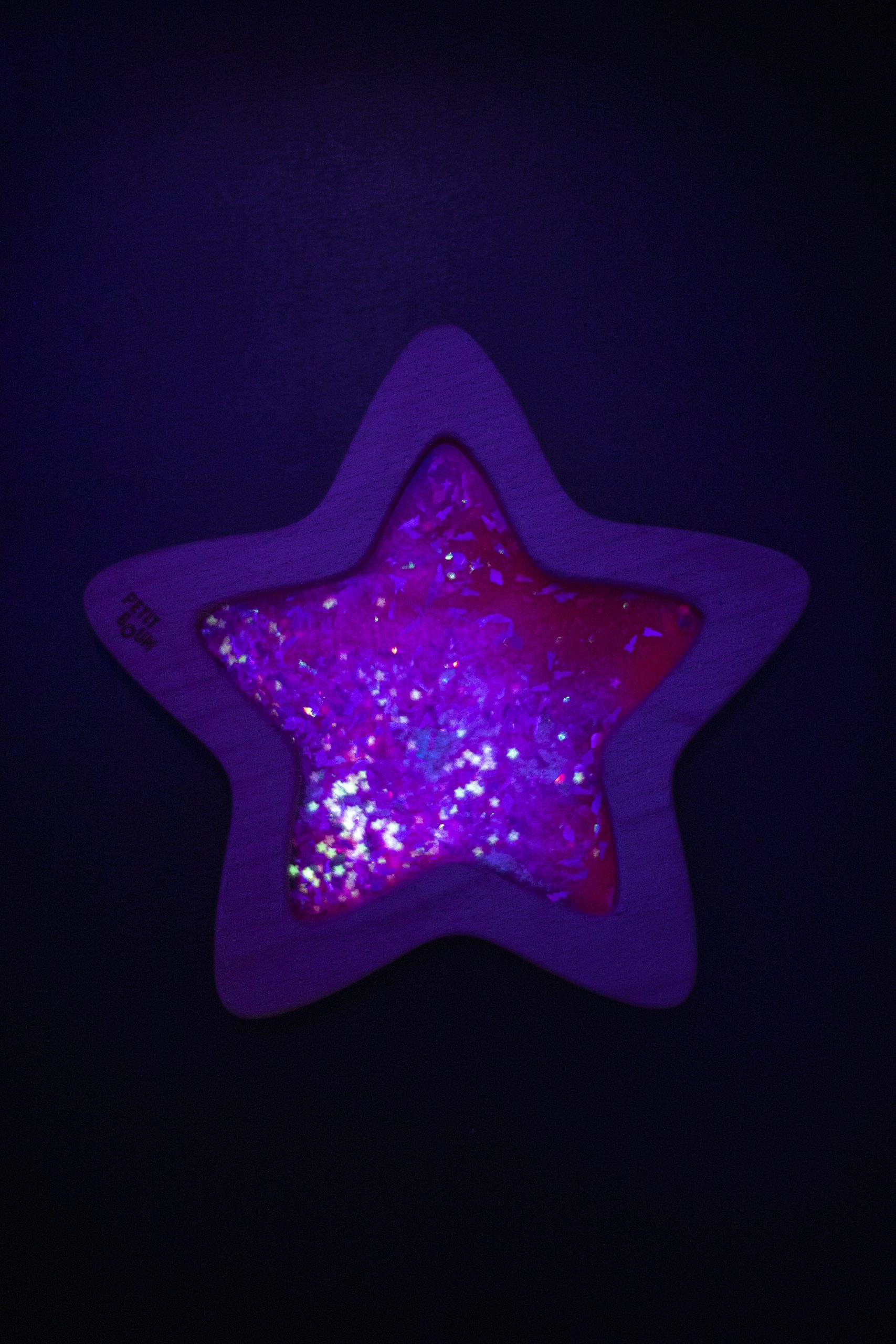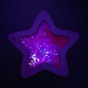 Wat deze ster extra bijzonder maakt? Laad hem op in natuurlijk licht of onder een blacklight, en de ster zal magisch oplichten in het donker. Perfect voor kalme momenten voor het slapengaan of als een leuk, sensorisch speeltje tijdens de dag. Geschikt vanaf 6 maanden en ideaal om je kindje op een speelse manier te laten ontdekken.
