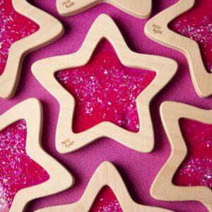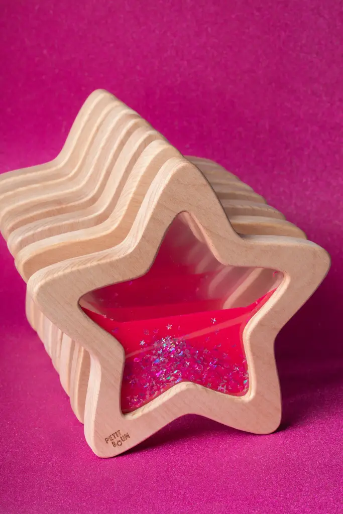 Droom weg met de prachtige Sensorische Ster – Nebula van Petit Boum. Deze ster, in levendige roze tinten, is niet alleen betoverend om naar te kijken, maar ook ontworpen om de zintuigen van je kleintje te prikkelen. Het fascinerende glittereffect en de vloeistofbeweging stimuleren de oogbewegingen, wat helpt bij ontspanning en concentratie.