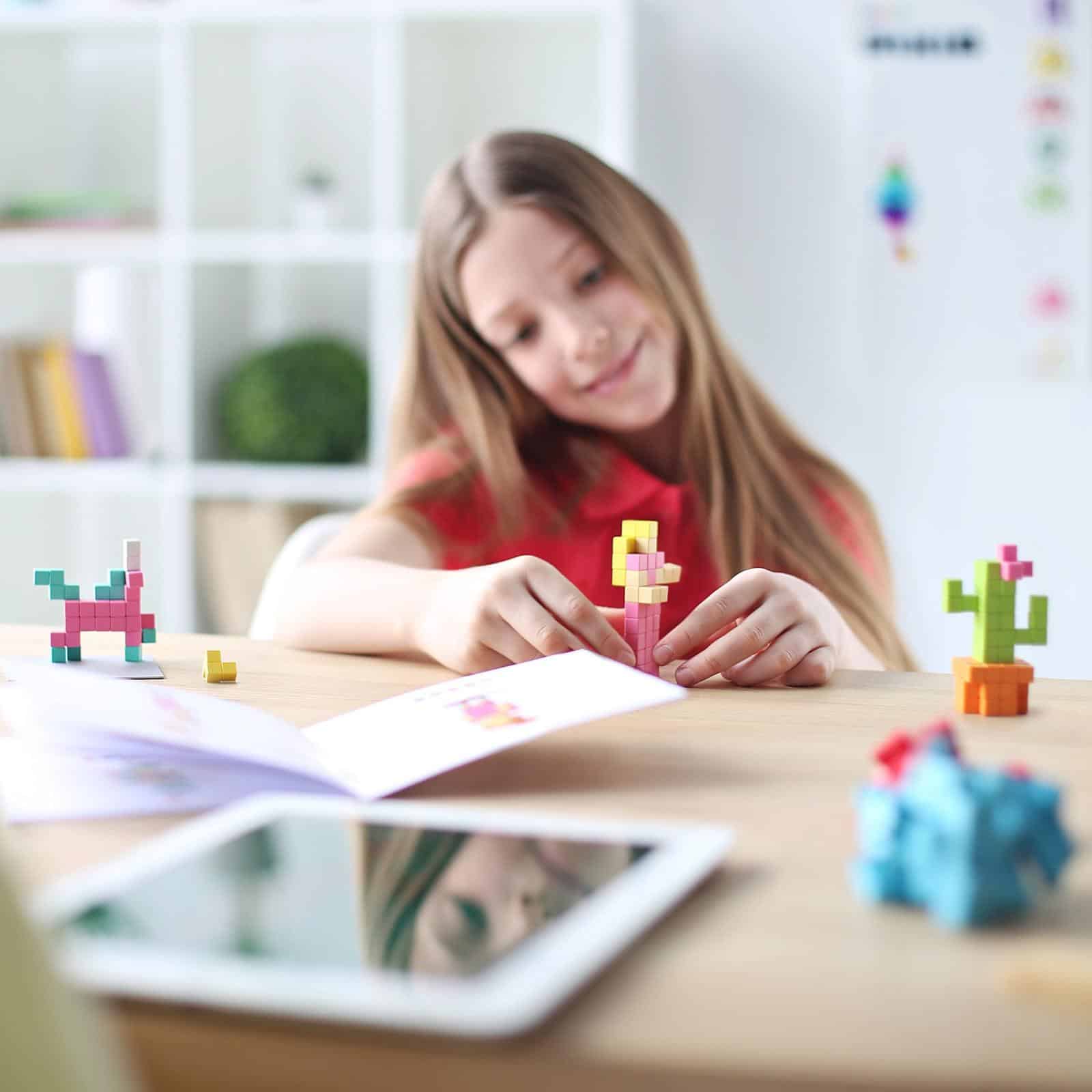 Met 50 PIXIO-blokken in zes perfect op elkaar afgestemde kleuren kun je je creatieve ideeën tot leven brengen. Begin met het bouwen van eenvoudige modellen met behulp van de instructies en ga vervolgens, wanneer je klaar bent, verder met het maken van je eigen ontwerpen.