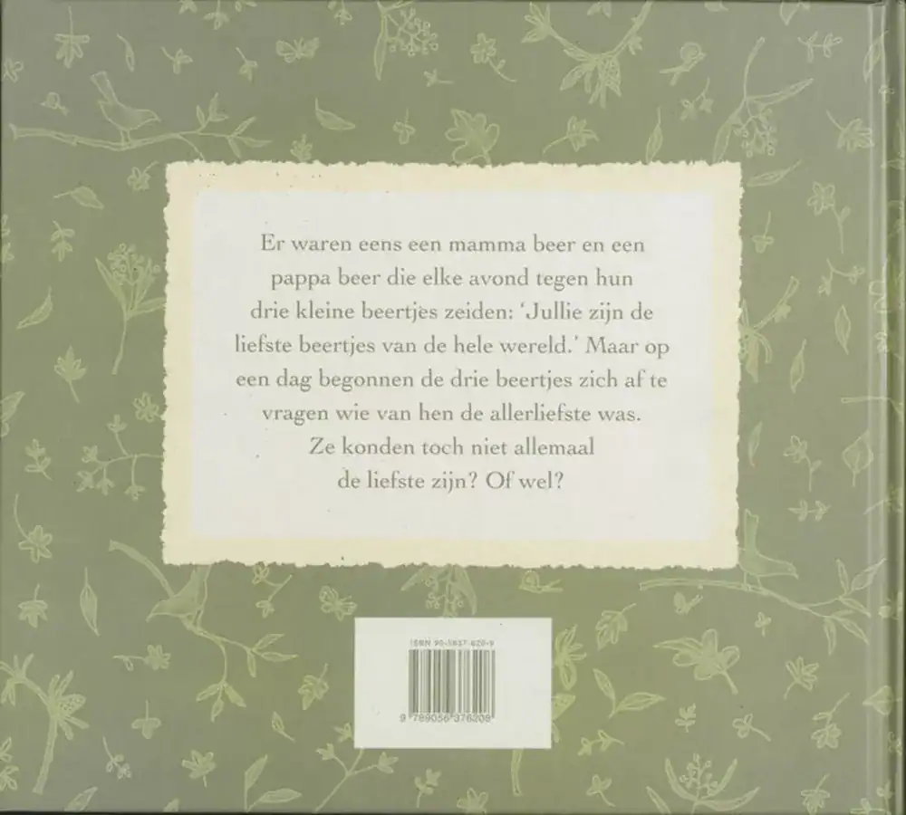 Er waren eens een mamma beer en een pappa beer die elke avond tegen hun drie kleine beertjes zeiden: ´Jullie zijn de liefste beertjes van de hele wereld.´ Maar op een dag begonnen de drie beertjes zich af te vragen wie van hen de allerliefste was. Ze konden toch niet allemaal de liefste zijn? Of wel?