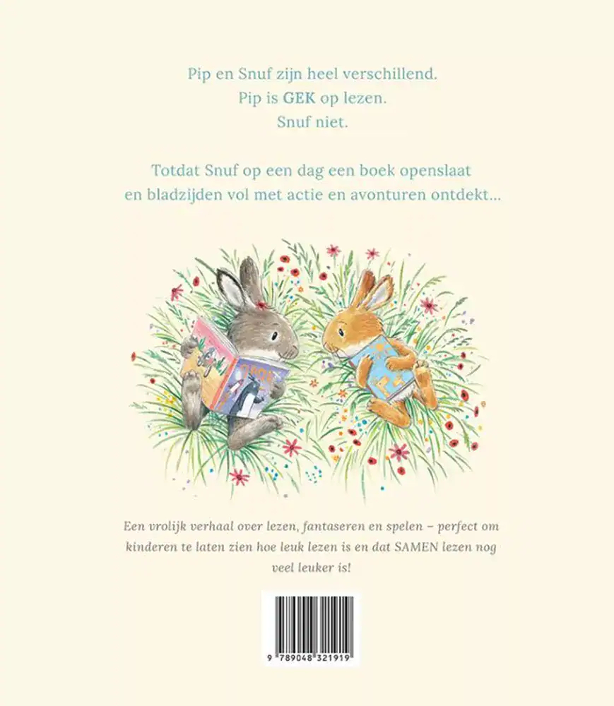 Pip en Snuf zijn heel verschillend. Pip is GEK op lezen. Snuf niet. Totdat Snuf op een dag een boek openslaat en bladzijden vol met actie en avonturen ontdekt… Een vrolijk verhaal over lezen, fantaseren en spelen – perfect om kinderen te laten zien hoe leuk lezen is en dat SAMEN lezen nog veel leuker is!