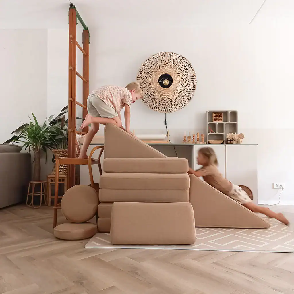 Met zijn compacte en stevige ontwerp biedt de glijbaan kinderen een veilige plek om te spelen en hun fysieke vaardigheden te verbeteren. Het kan worden gebruikt als een speels element in hindernisbanen, om overheen te rollen of om tegenop te klimmen. Dankzij de zachte corduroy stof en het dichte schuim kunnen kinderen zich vol vertrouwen uitleven, terwijl ouders gemoedsrust hebben over de veiligheid.