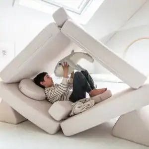De Shappy Speelbank is geschikt voor kinderen van verschillende leeftijden, wat het een veelzijdig en waardevol stuk maakt voor elke gezinswoning. Voor baby’s en peuters biedt de bank een veilige en comfortabele plek om te leren zitten, kruipen en spelen. De zachte kussens bieden bescherming tegen vallen en stoten, en de bank kan eenvoudig worden aangepast om een speelhoek of rustplek te creëren.