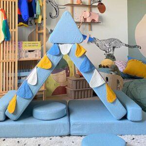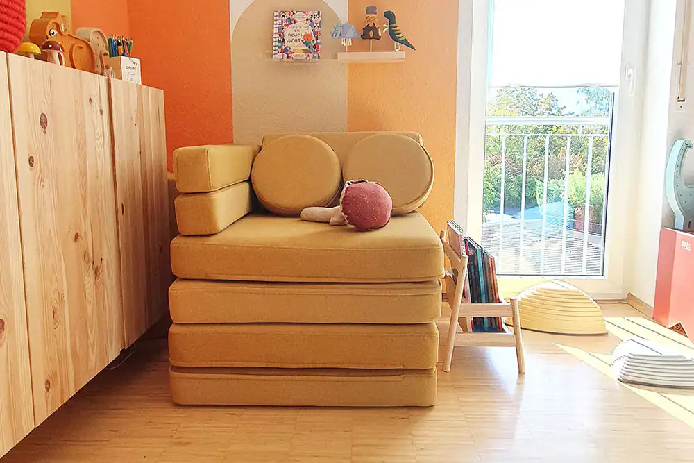 Voor kleuters en oudere kinderen biedt de bank eindeloze mogelijkheden voor fantasierijk spel en creativiteit. Ze kunnen ermee bouwen, klimmen, rollen en balanceren, waardoor ze hun motorische vaardigheden verder ontwikkelen. De bank stimuleert actief spel en helpt kinderen hun energie op een speelse manier kwijt te raken.