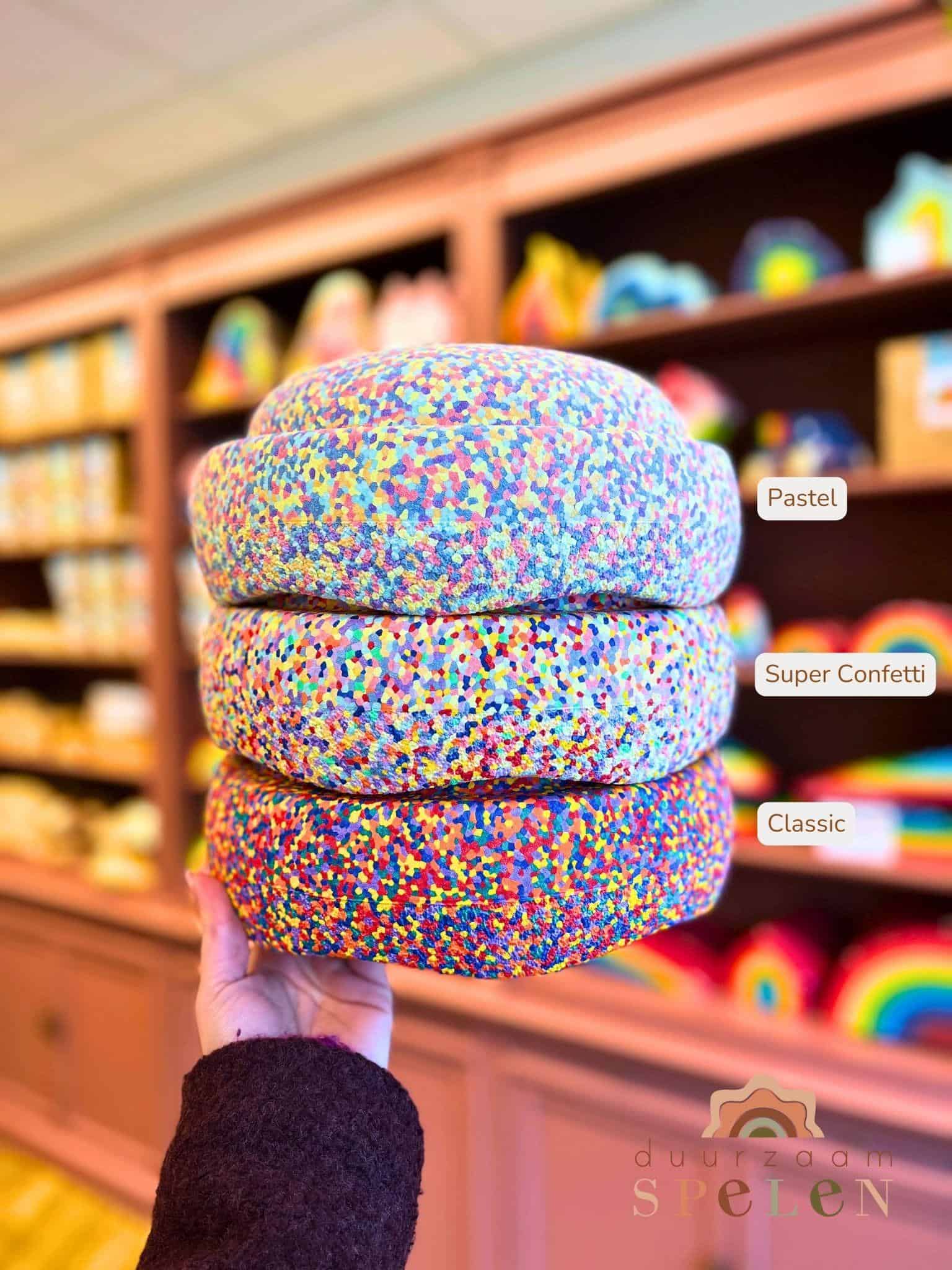 Stapelstein® Rainbow Set classic is de ideale Stapelstein® Set om je op weg te helpen naar een kleurrijk bewegingsavontuur. De Stapelstein® Rainbow Set classic combineert de zes harmonieuze kleuren van de regenboog. De kleurrijke Stapelstein® Board super confetti classic is de perfecte aanvulling voor dynamisch bewegende activiteiten. Met deze kleurrijke regenboogSet kunt u de diversiteit van Stapelstein® ervaren.
