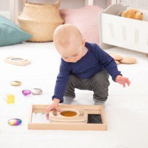 Met de Tickit® Klein Houten Spiegelbakje wordt spelen nog leuker! Kinderen kunnen hun favoriete schatten bekijken vanuit verschillende hoeken en ontdekken hoe licht en reflectie werken.