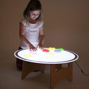 Laat kinderen de magie van licht, kleur en vormen ervaren met het Tickit® Ronde Lichtpaneel Ø60 cm. Dankzij het grote, ronde ontwerp kunnen meerdere kinderen tegelijk rondom het paneel werken, waardoor het perfect is voor groepsactiviteiten en gedeeld speelplezier. Met drie instelbare lichtniveaus en een duurzaam, kindvriendelijk design stimuleert dit lichtpaneel nieuwsgierigheid en creativiteit op een speelse manier.