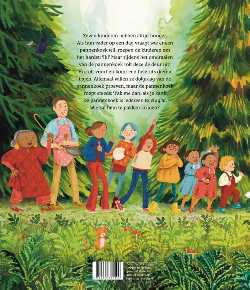 Zeven kinderen hebben altijd honger. Als hun vader op een dag vraagt wie er een pannenkoek wil, roepen de kinderen om het hardst: ‘Ik! Maar tijdens het omdraaien van de pannenkoek rolt deze de deur uit! Hij rolt voort en komt een hele rits dieren tegen. Allemaal willen ze dolgraag van de pannenkoek proeven, maar de pannenkoek roept steeds: ‘Pak me dan, als je kan!’ De pannenkoek is iedereen te vlug af. Wie zal hem te pakken krijgen?